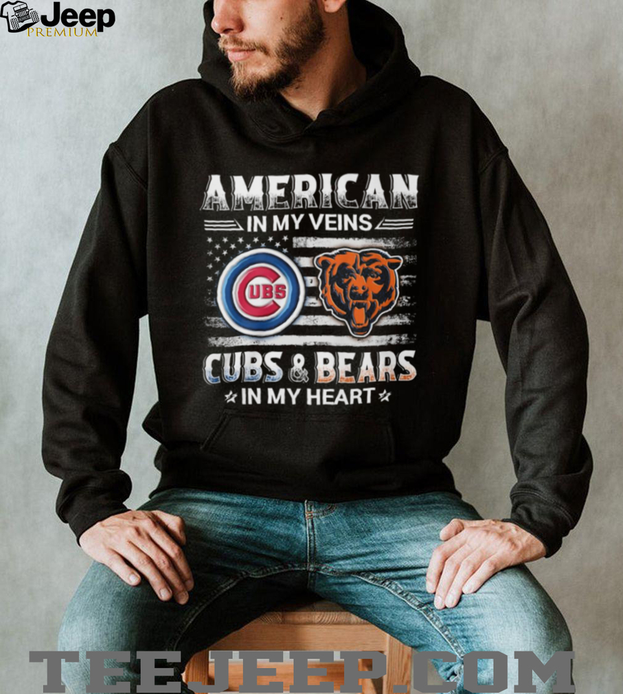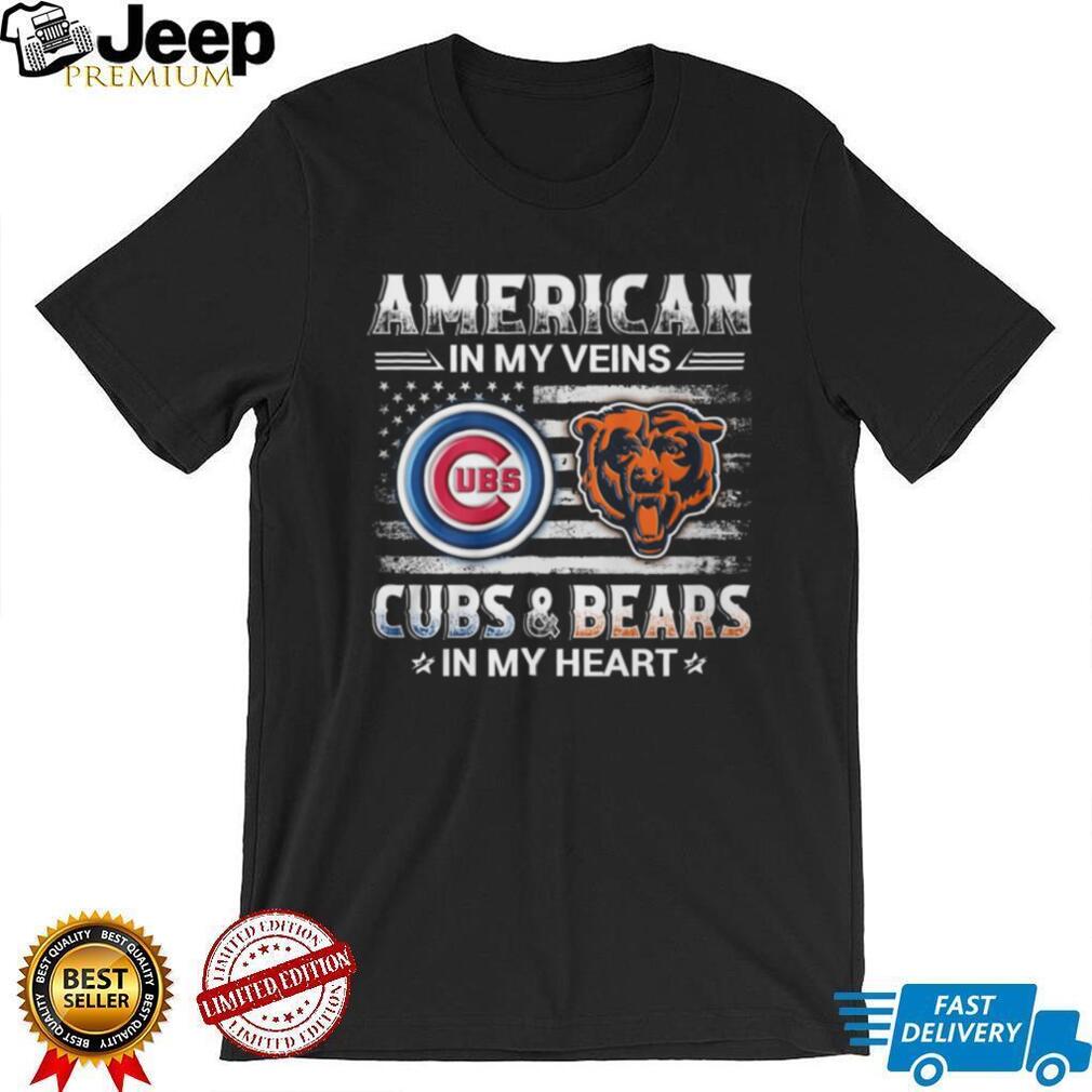 ()Chicago Sports Fan American Flag Cubs and Bears Heart T Shirt, Treat yourself or make a great gift for your loved ones