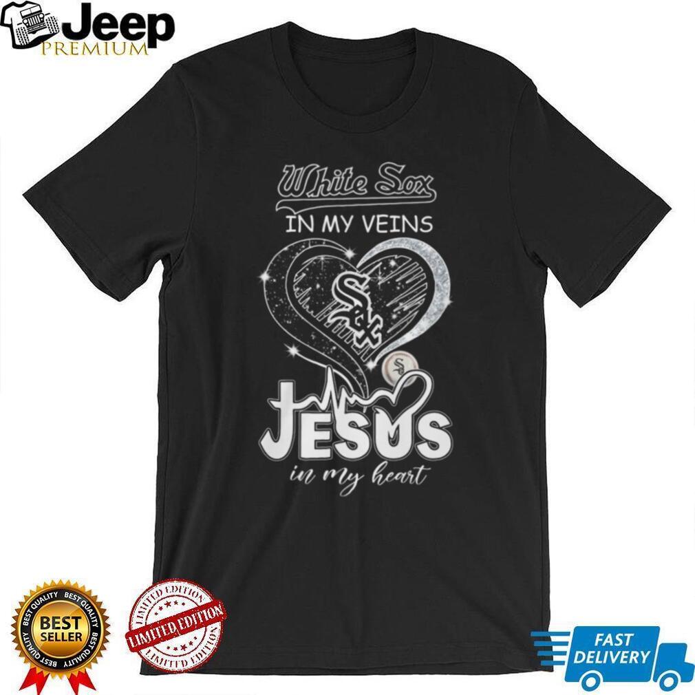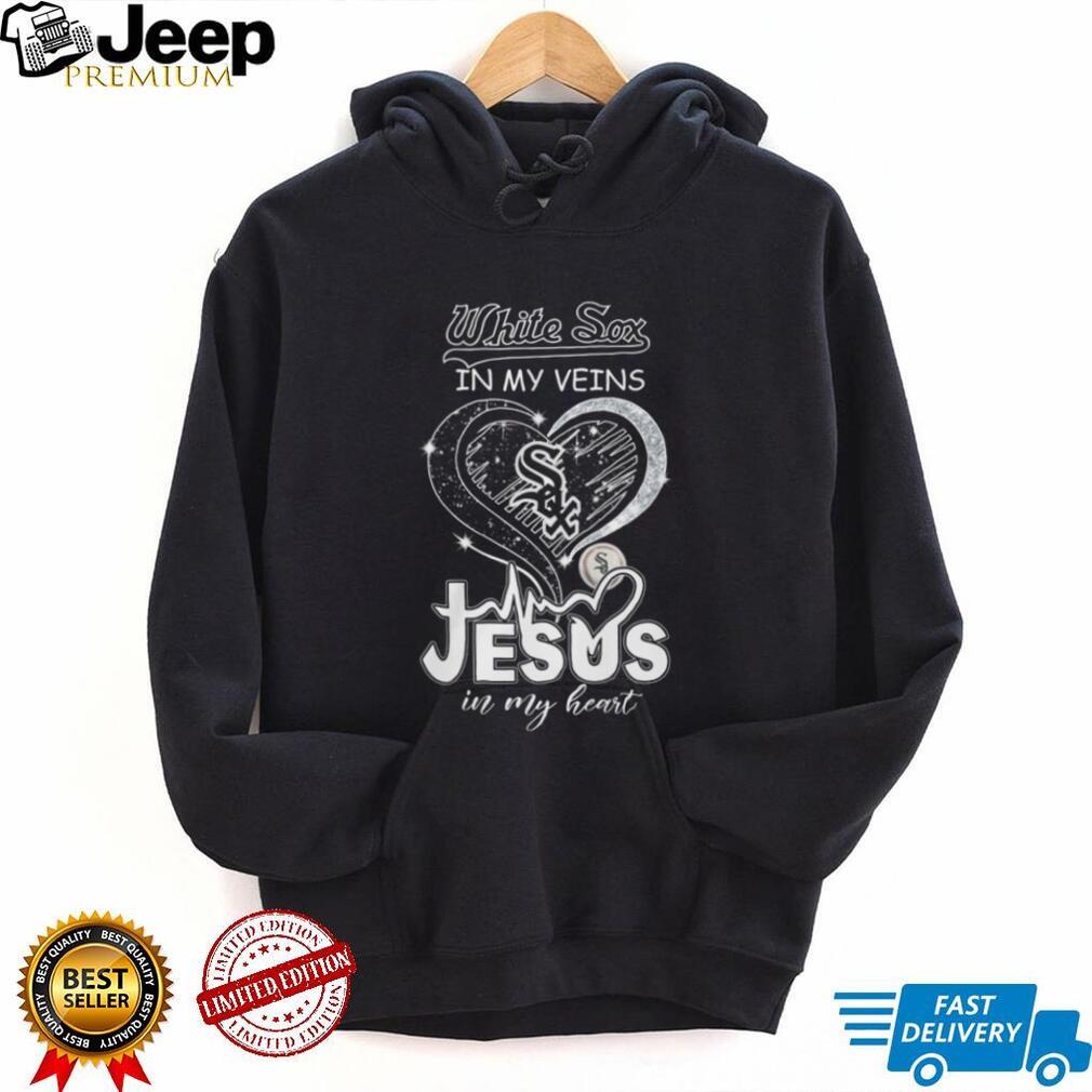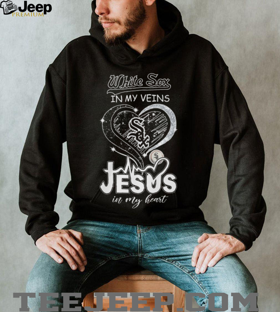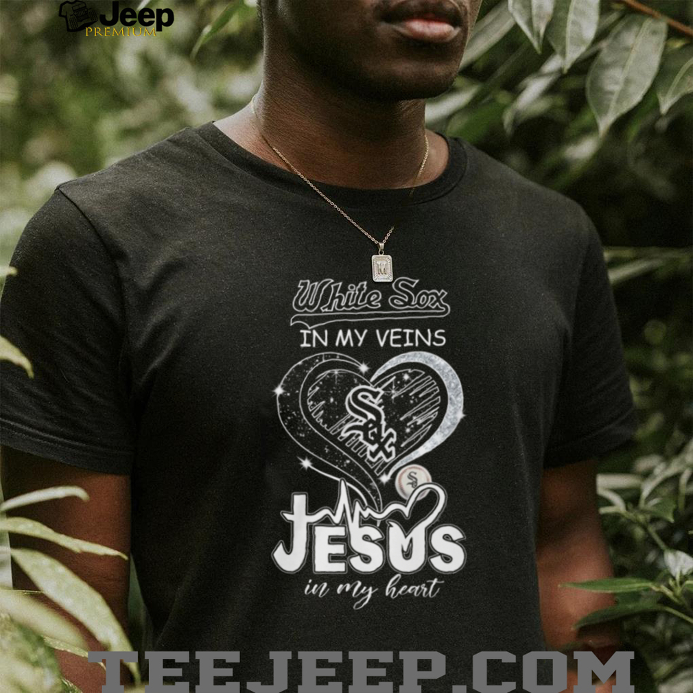 ()Chicago White Sox In My Veins Jesus In My Heart Heartbeat T Shirt, Treat yourself or make a great gift for your loved ones
