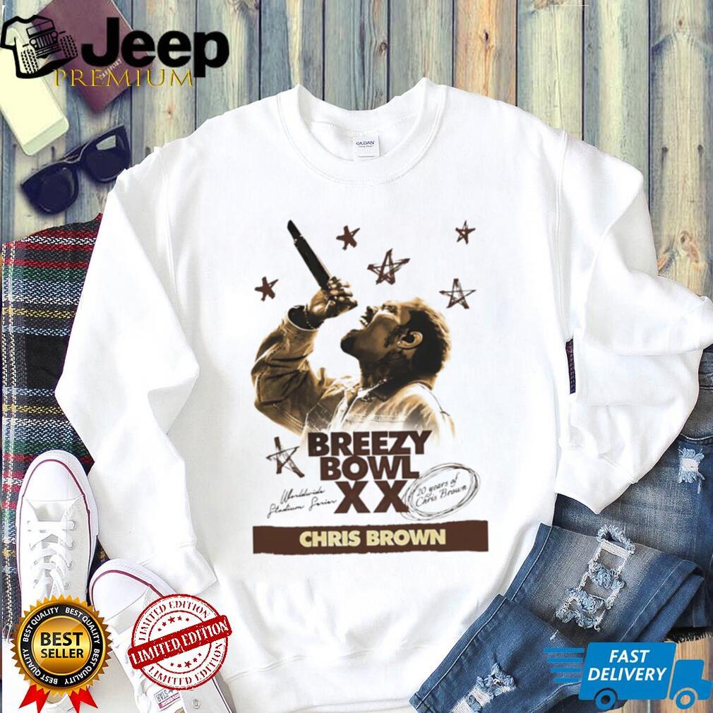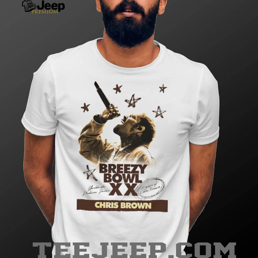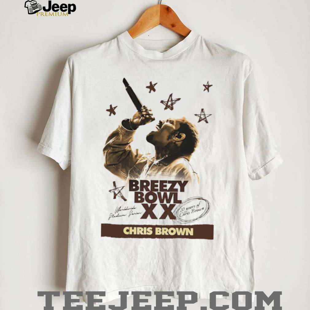 The “Chris Brown Breezy Bowl XX Tour 2 sided 20 years of Chris Brown shirt” is a commemorative piece of merchandise for Chris Brown’s “Breezy Bowl XX” tour in 2025. The “XX” in the tour name signifies the celebration of his 20-year career in the music industry, marking the anniversary of his debut album. As today is April 4th, 2025, following the tour announcement on March 27th, this shirt would be a newly released item, likely available at tour venues and online. The “2 sided” aspect indicates that the shirt features designs on both the front and the back, offering more visual content related to the tour and the anniversary.