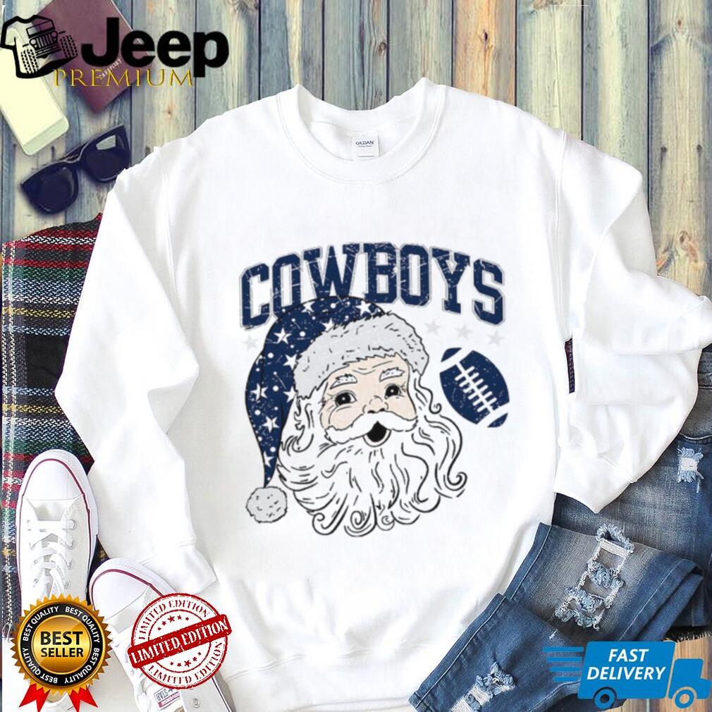 This shirt is perfect for the ultimate Dallas Cowboys fan with a love for Christmas. Great for showing off your team spirit at holiday gatherings or as a fun and unique Christmas present for a fellow fan with Dallas Santa with Football T Shirt!