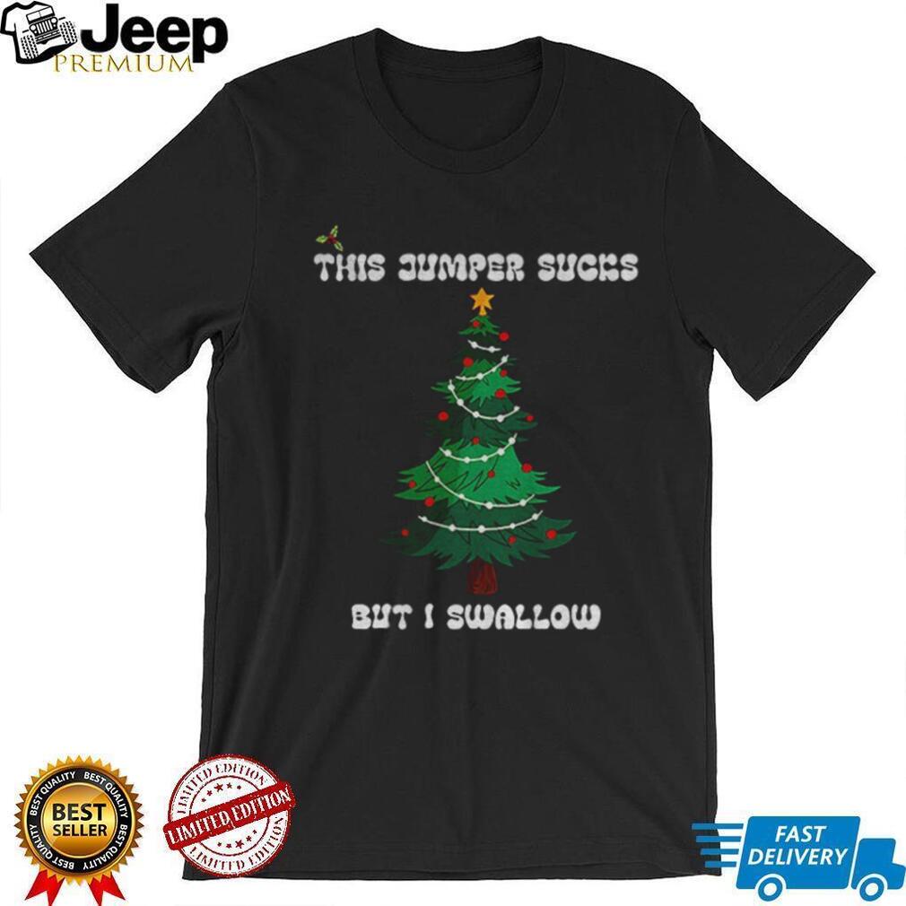To keep your Christmas tree this jumper sucks but I swallow Merry Christmas shirt looking great, wash it inside out with cold water and similar colors. Tumble dry on a low setting or hang it to dry to help maintain the print and fabric. Avoid ironing directly over the design.
