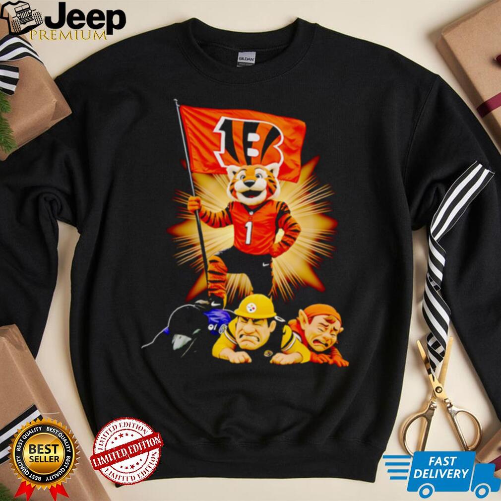 The “Cincinnati Bengals mascot standing with flag shirt” is an absolute essential for any devoted member of the Bengals faithful. It directly addresses the user’s primary search intent by featuring the fierce **Cincinnati Bengals mascot** (or its symbolic representation) proudly “standing with flag,” embodying the team’s spirit and the city’s pride. This **shirt** is more than just casual apparel; it’s a bold declaration of your unwavering support for the Bengals, perfect for game days, watch parties, or simply showing your stripes in everyday life. It encapsulates the powerful connection between the team, its vibrant imagery, and its passionate fanbase. Wear this shirt to celebrate every thrilling moment, every touchdown, and the indomitable spirit of the Cincinnati Bengals and their loyal supporters. Who Dey!
