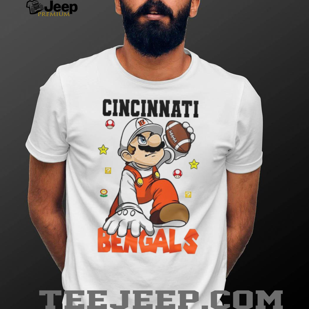 This shirt is perfect for Cincinnati Bengals fans, Super Mario Bros enthusiasts, and anyone who loves a good mashup. Wear it to games, parties, or just around town. It also makes a great gift for the sports and gaming fan in your life!