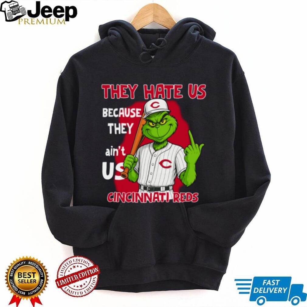 Show your love for the Reds and the holiday season with this funny and unique Grinch tee! Featuring the saying “They Hate Us Because They Ain’t Us,” this shirt is guaranteed to get laughs and turn heads. It’s perfect for wearing to games, Christmas parties, or just lounging around the house. This shirt is made from a soft and comfortable cotton blend. Available in various sizes.