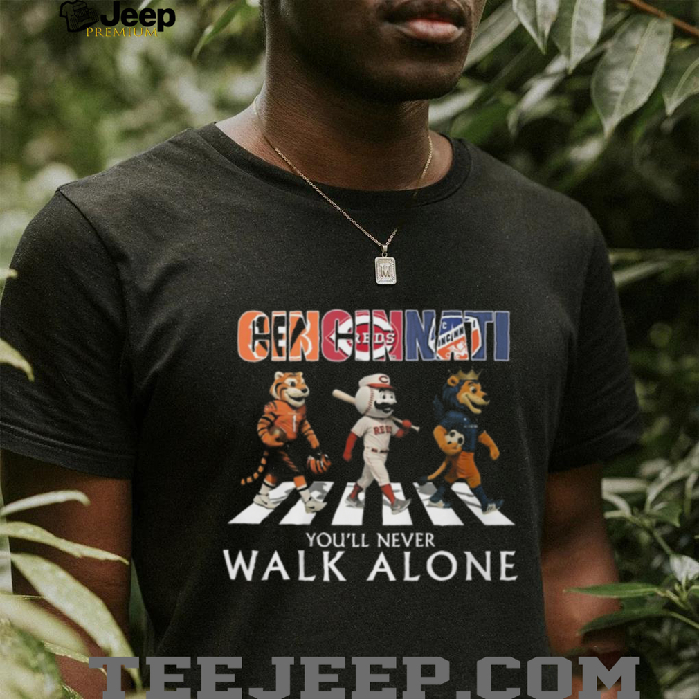 👕 About Cincinnati Sports Mascots Abbey Road You'll Never Walk Alone T Shirt
