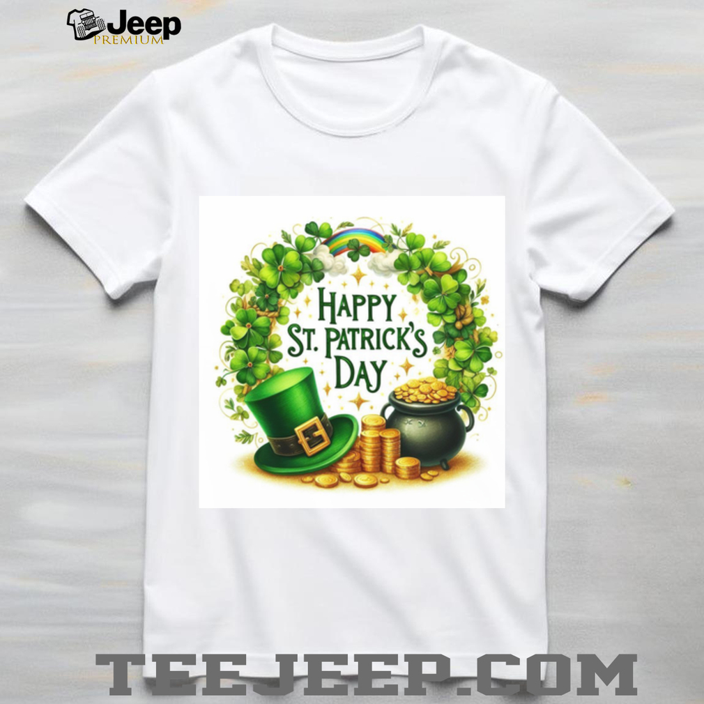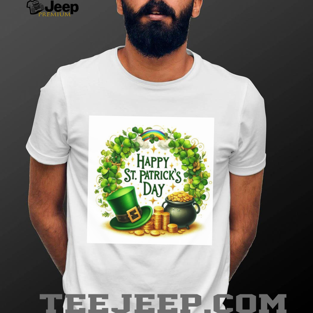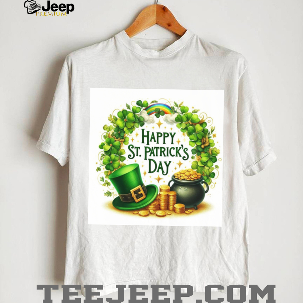 ()Classic St. Patrick’s Day Wreath with Pot of Gold and Rainbow T Shirt, Treat yourself or make a great gift for your loved ones