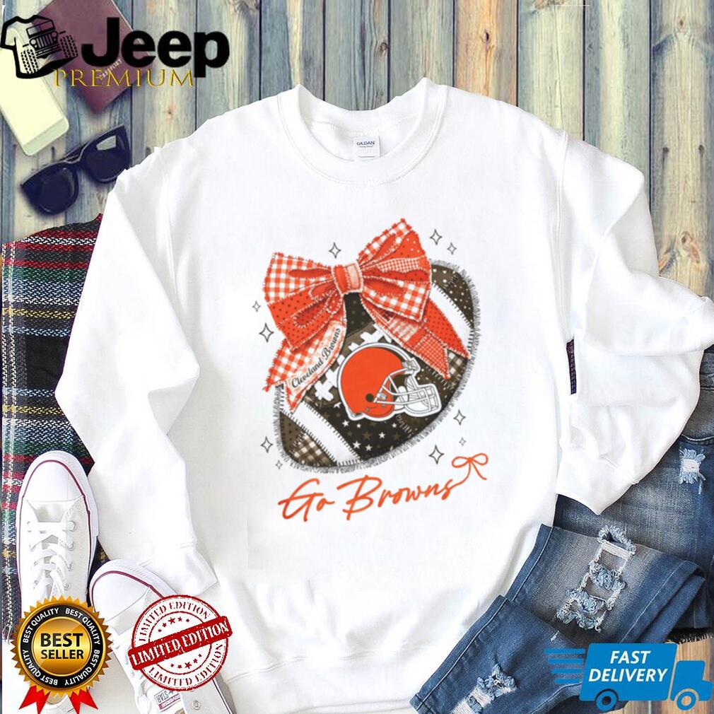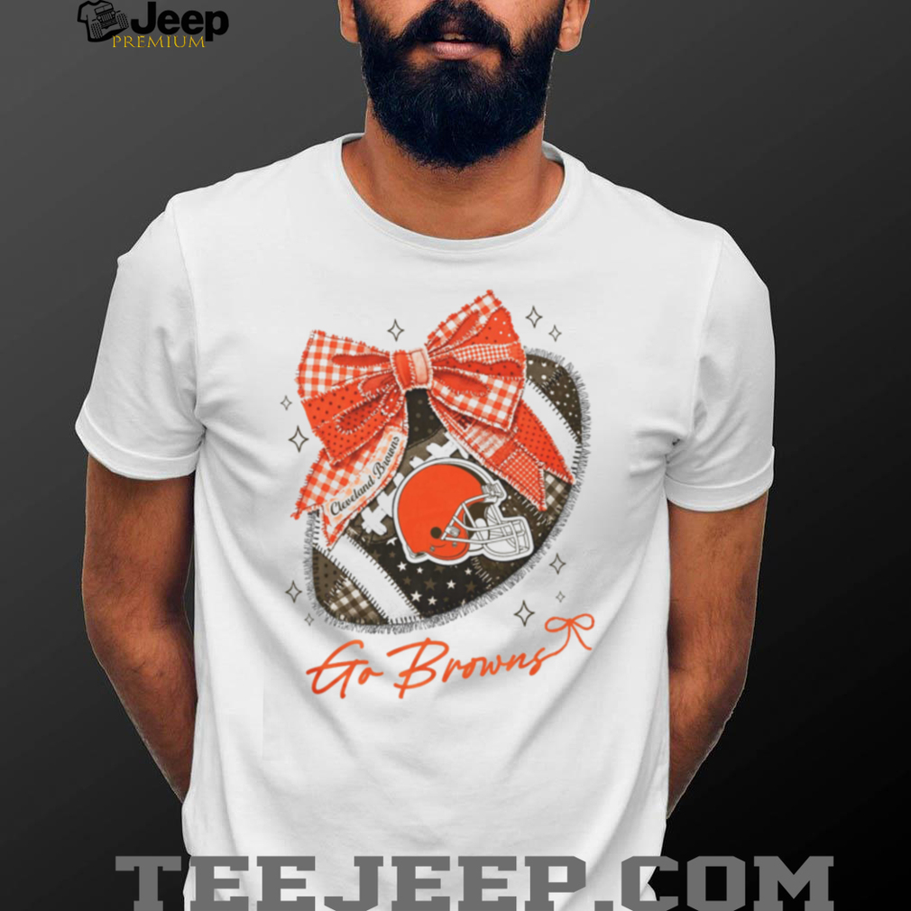 Unlike standard NFL merchandise, this design utilizes the coquette bow motif to add a romantic, retro-inspired layer to the traditional Browns helmet. It’s an artistic tribute that turns a symbol of toughness into a piece of wearable art, offering a sophisticated alternative to basic logo shirts that feels like a unique, hand-picked boutique find.