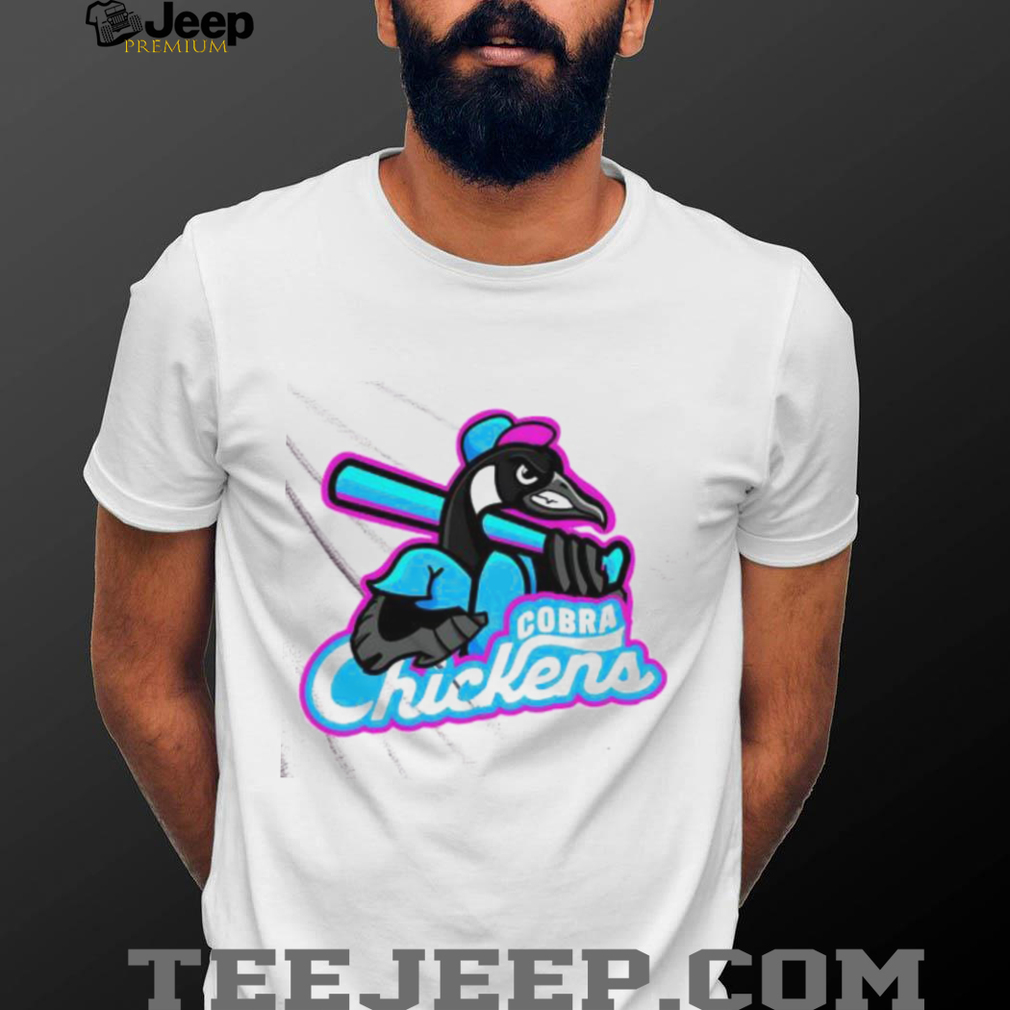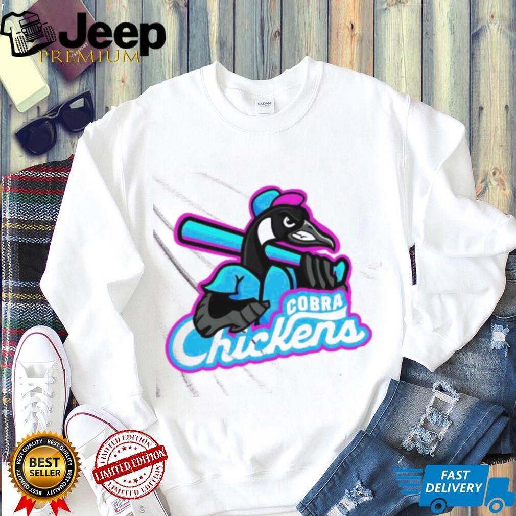 The “Cobra Chickens logo shirt” is a piece of apparel that features a unique and potentially humorous brand or group logo. The term “Cobra Chickens” suggests a playful yet edgy combination of two contrasting images: the sleek and dangerous cobra, and the common and often comical chicken. This blend likely aims to create a memorable and attention-grabbing logo. The shirt intends to promote the brand or group associated with this logo. The design prominently features the “Cobra Chickens” logo.