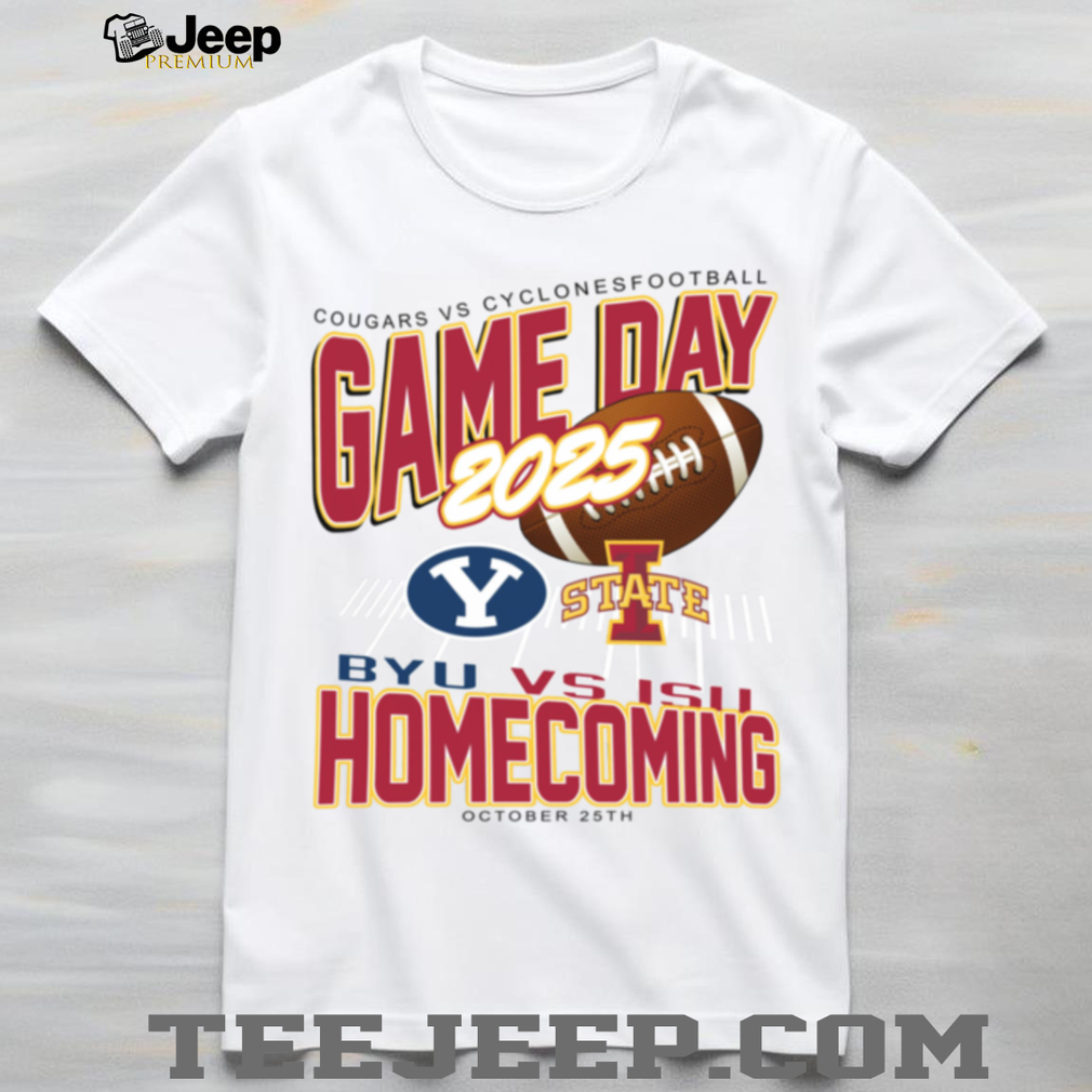 This College Gameday Merch Iowa State Cyclones Homecoming Football vs BYU Cougars T Shirt is more than just a shirt; it’s a symbol of your dedication to the Cyclones. The design captures the excitement of GameDay and the spirit of Homecoming. Made from a soft, comfortable cotton blend, this shirt will keep you feeling great all game long. It’s available in a variety of sizes to ensure a perfect fit for every fan. The high-quality print ensures the design remains vibrant, so you can show your Cyclones pride for years to come.