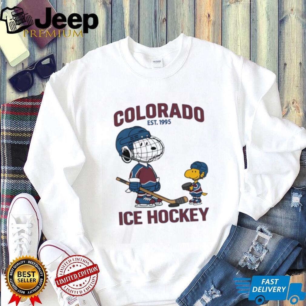 👕 About Colorado Ice Hockey Est 1995 Snoopy and Woodstock White T Shirt