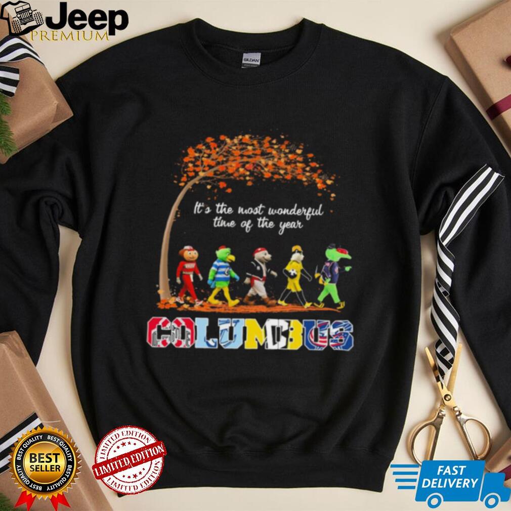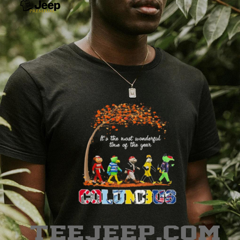 Unite Your Love for Columbus Sports and Classic Music with the “Columbus Sports Teams Mascots & Beatles Abbey Road ‘It’s The Most Wonderful Time Of The Year’ Shirt”
