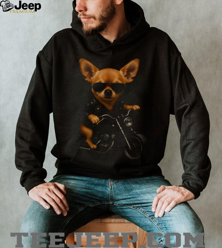 (Cool Chihuahua on Motorcycle Leather Jacket Biker Dog T Shirt)Cool Chihuahua on Motorcycle Leather Jacket Biker Dog T Shirt, Treat yourself or make a great gift for your loved ones