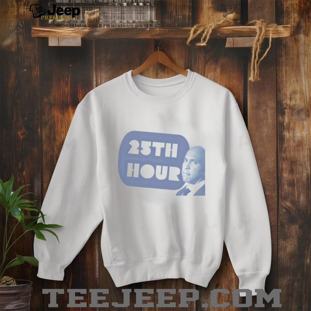 Wearing this shirt signifies admiration for Senator Booker’s perceived work ethic and commitment to his constituents or political causes. It suggests that the wearer appreciates his dedication and views him as someone who goes above and beyond the call of duty. The “25 hour” concept emphasizes this dedication, suggesting that Senator Booker invests more time and effort than is typically expected. It’s a way for supporters to show their appreciation for his perceived tireless work ethic and commitment.
