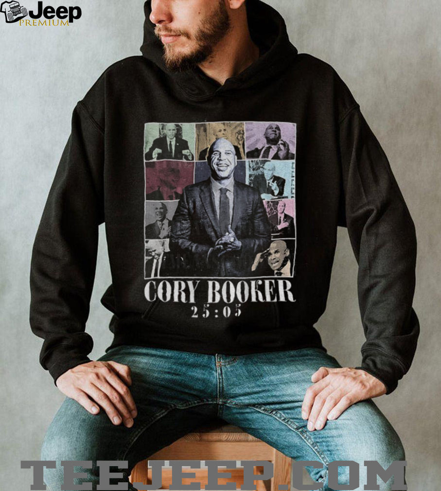 The “Cory Booker Filibuster 25 05 graphic shirt” is a piece of apparel that commemorates a specific moment in Senator Cory Booker’s political career, likely referencing a filibuster he conducted for 25 hours and 5 minutes. This shirt aims to capture the significance of that event, highlighting Booker’s dedication and endurance in advocating for his political beliefs. The “graphic” element suggests a visual representation of the filibuster, perhaps through a stylized timeline, a clock, or other symbolic imagery. It serves as a wearable reminder of Booker’s commitment and the power of sustained political action. The design prominently features Cory Booker’s name, the word “Filibuster,” and the time “25 05,” along with a graphic element.