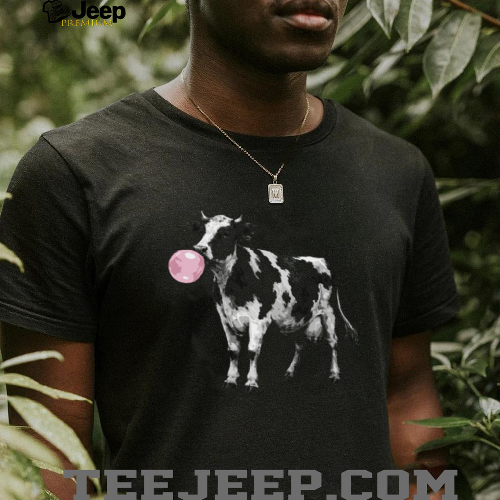 ()Cow Blowing Pink Bubblegum Retro Animal Graphic T Shirt, Treat yourself or make a great gift for your loved ones