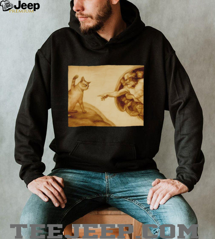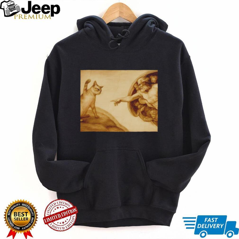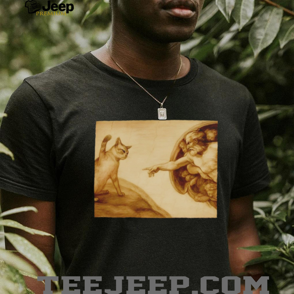 👕 About Creation of Adam Michelangelo Cat Parody Art T Shirt