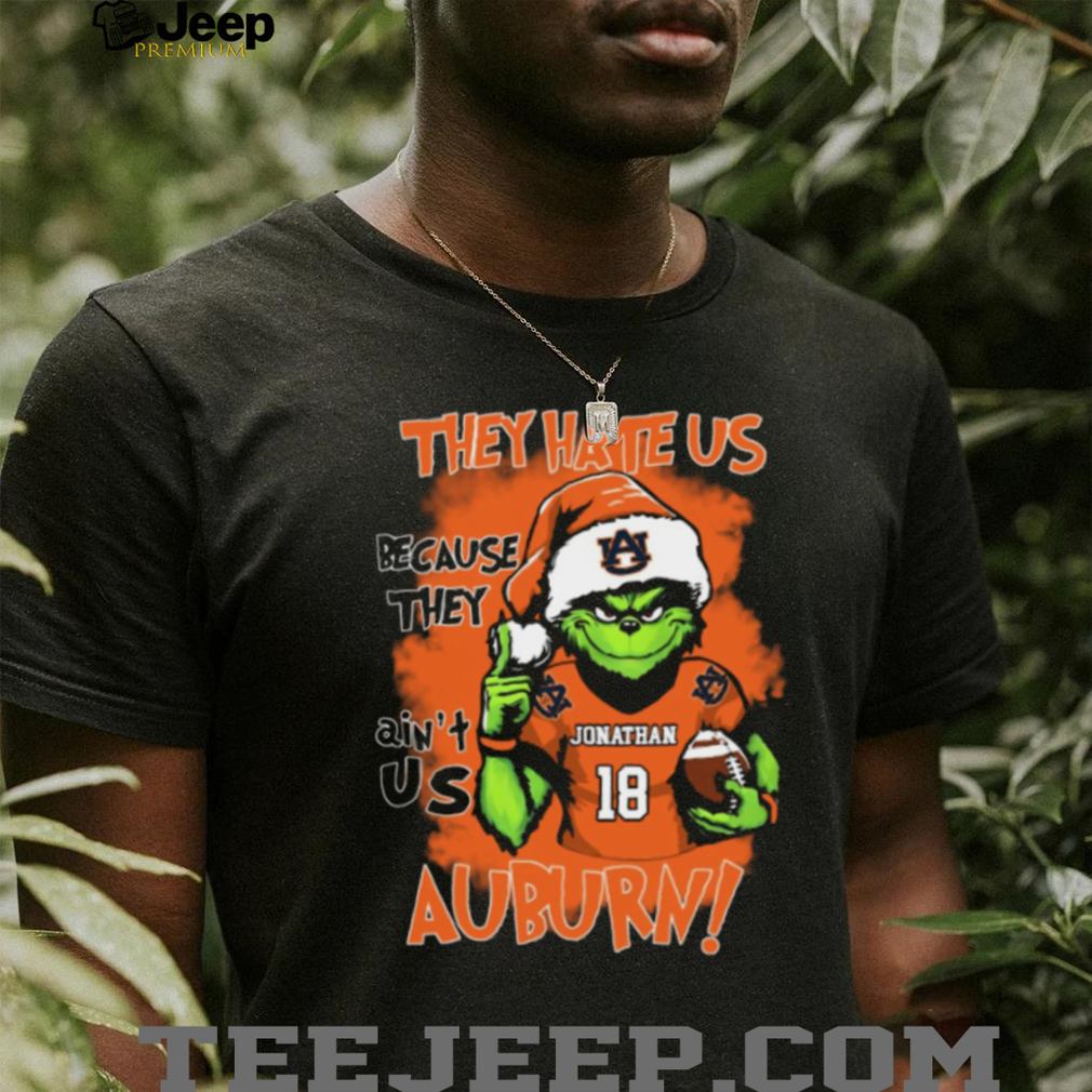 Show your Auburn Tigers pride with a touch of Grinchy holiday fun! This custom holiday shirt features the Grinch, ready to celebrate with the Tigers. Personalize it with your name for a truly unique look. With the funny quote “They Hate Us Because They Ain’t Us,” it’s the perfect way to show your team spirit and your sense of humor this holiday season. A unique gift for any NCAA football fan!