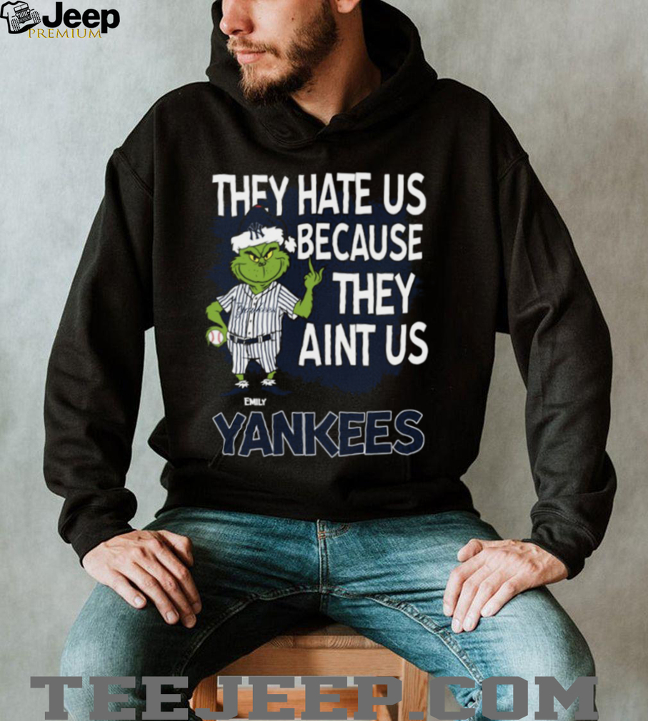 Deck the dugout with this hilarious New York Yankees Christmas shirt! Imagine the laughs and cheers as you celebrate the holidays with this Grinch Santa baseball tee. Featuring the iconic quote “They Hate Us Ain’t Us,” this shirt is the perfect fun MLB fan gift for any Yankees supporter with a sense of humor.