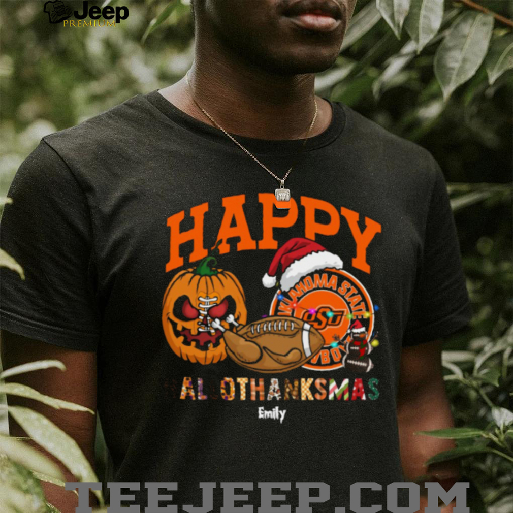 Get ready to celebrate the holidays with this Custom Oklahoma State Cowboys HalloThanksMas Shirt! It’s a unique and festive way to show your team spirit during Halloween, Thanksgiving, and Christmas. This one-of-a-kind tee combines the best of all three holidays, making it the perfect gift for any Cowboys fan who loves to stand out from the crowd.