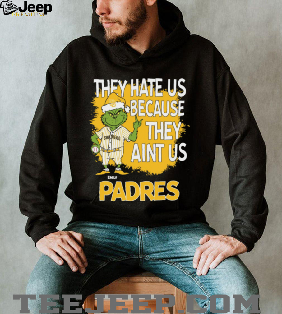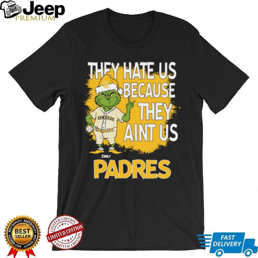 This isn’t your typical baseball tee! Imagine Santa Grinch rocking Padres colors – a hilarious mashup for fans who appreciate a good laugh. This Funny Santa Baseball Tee is made from a soft, comfortable cotton blend, perfect for cheering on the Padres or relaxing at home during the holidays. It boldly declares “They Hate Us Ain’t Us,” showcasing the team’s playful confidence. Available in various sizes, this MLB Fan Gift ensures a great fit for every Padres supporter.