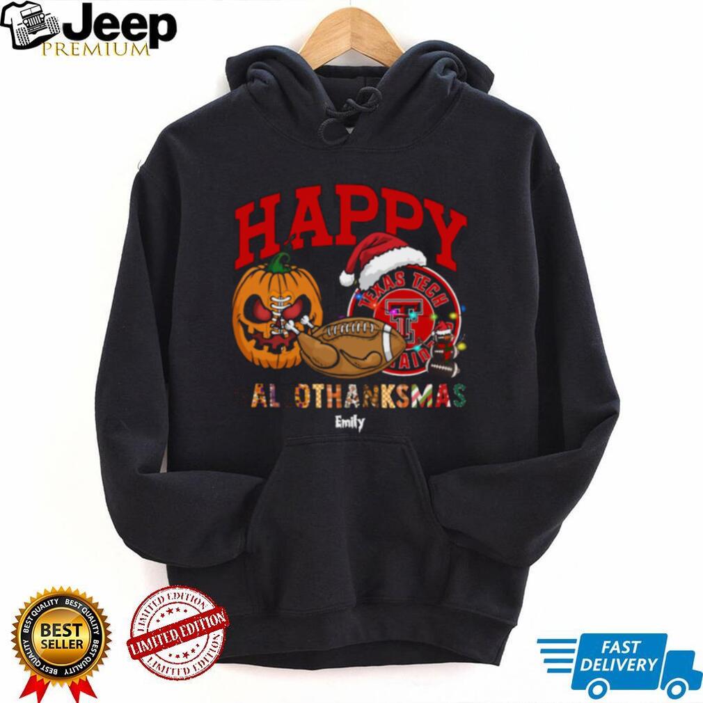 This Custom Texas Tech Red Raiders HalloThanksMas Shirt is more than just a holiday tee; it’s a delightful expression of team loyalty and festive fun. Ideal for Halloween parties, Thanksgiving dinners, or Christmas gatherings, this shirt ensures you stand out with its charming design. Made from a soft and comfortable cotton blend, it’s perfect for all-day wear, whether you’re cheering on the Red Raiders or enjoying holiday festivities. Available in various sizes, this shirt offers a great fit for every fan. The cute design combines the best of Halloween, Thanksgiving, and Christmas, making it a must-have for any dedicated Texas Tech supporter.