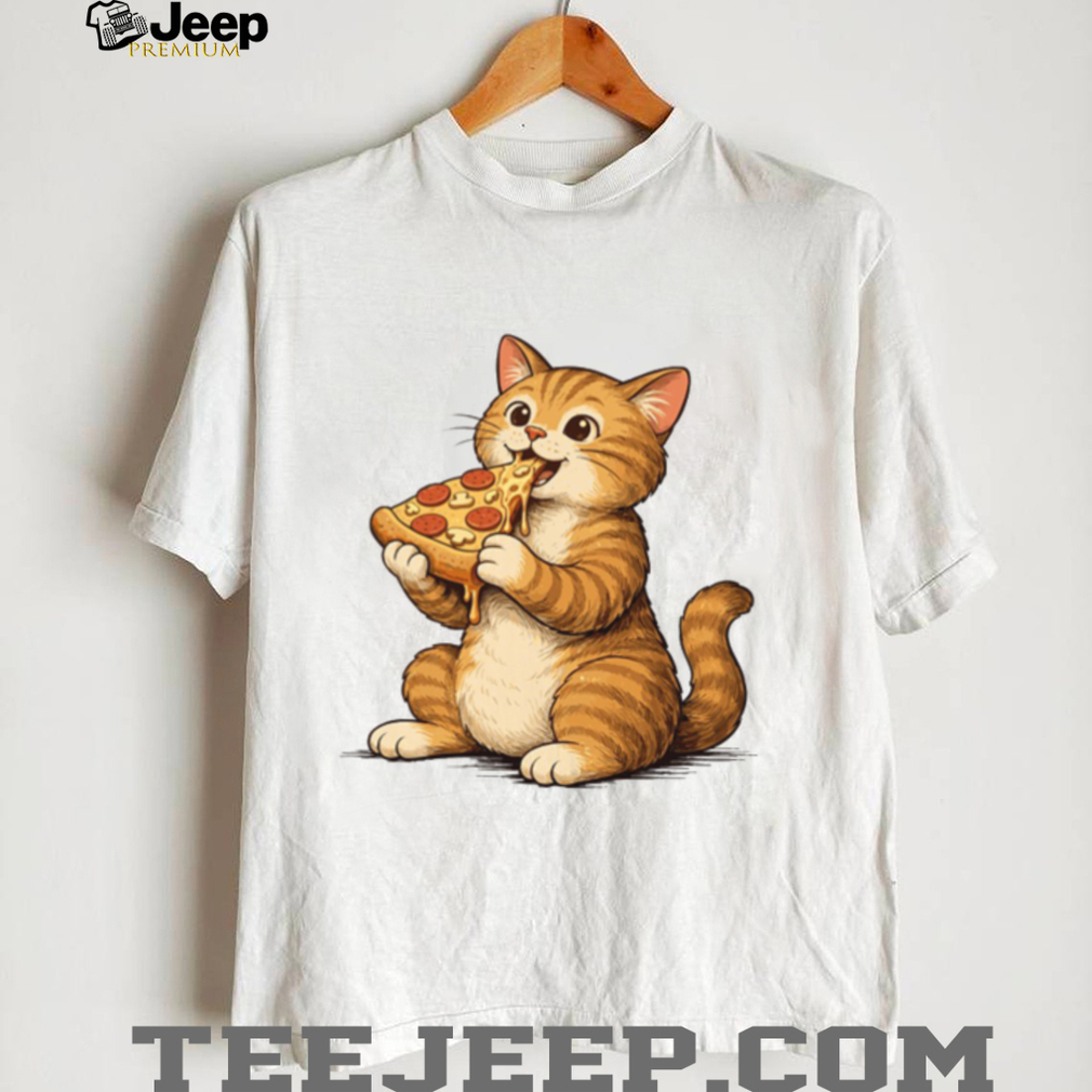 ()Cute Fat Orange Tabby Cat Eating Pizza Slice T Shirt, Treat yourself or make a great gift for your loved ones
