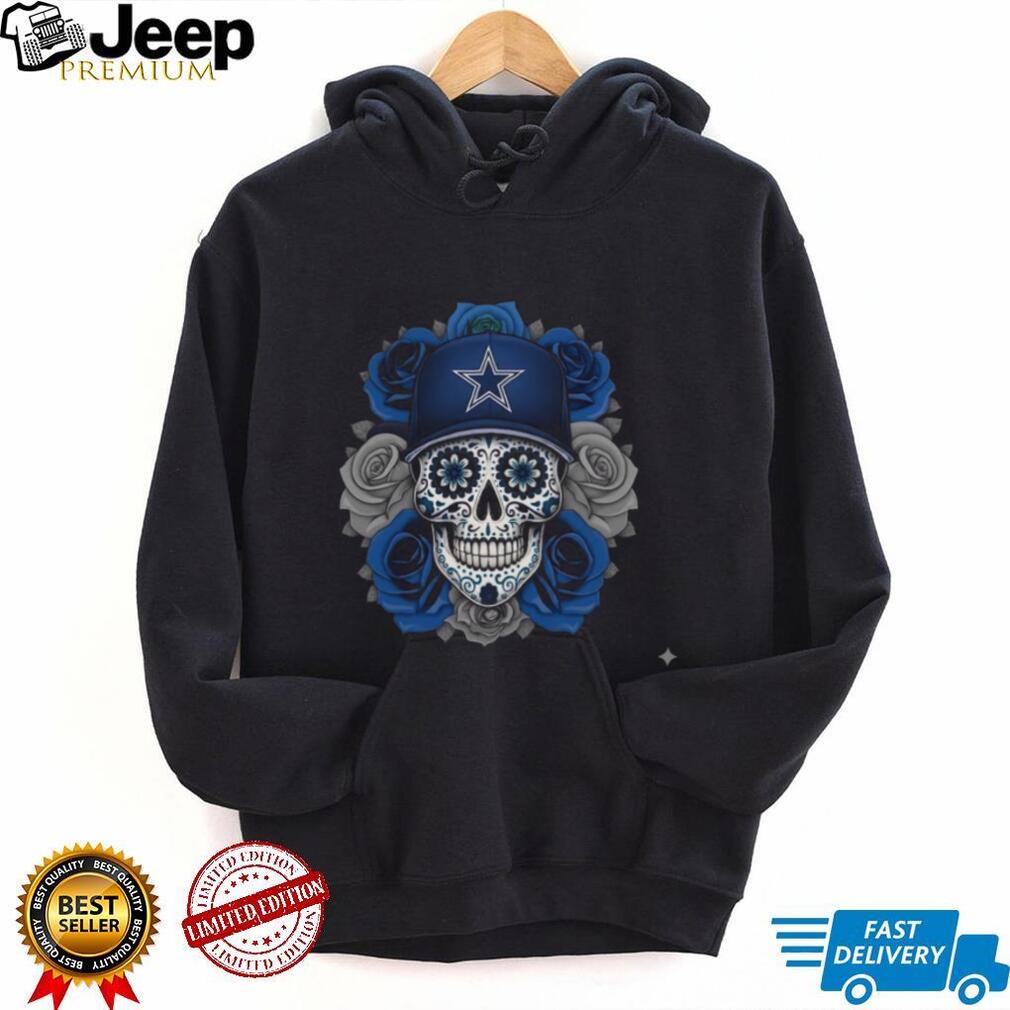 Ready to blend your love for the Dallas Cowboys with the vibrant artistry of Día de los Muertos? This Dallas Cowboys Sugar Skull Cap & Roses T Shirt is a touchdown of team spirit and cultural flair. Forget the same old jerseys – this tee brings a whole new level of fan style.