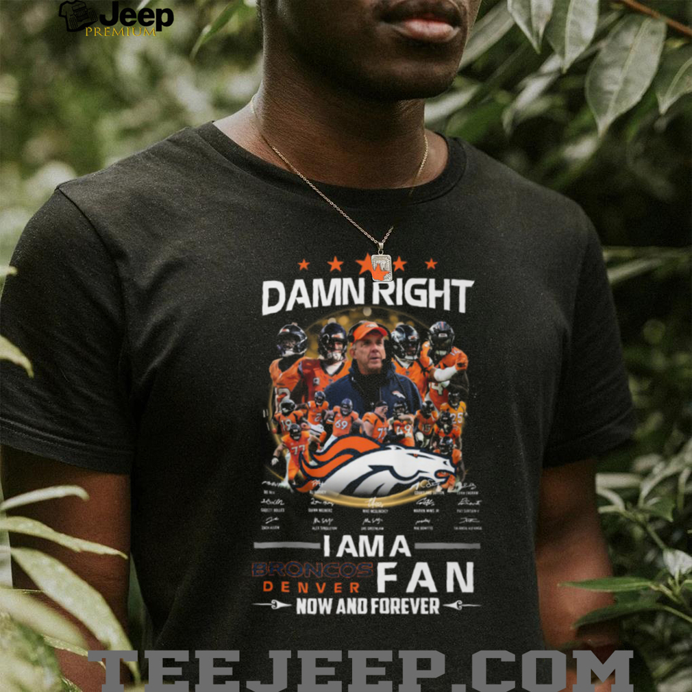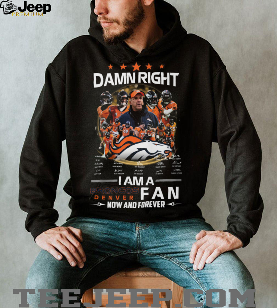 👕 About Damn Right I Am A Denver Broncos Fan Now And Forever Sean Payton Bo Nix Signatures T Shirt