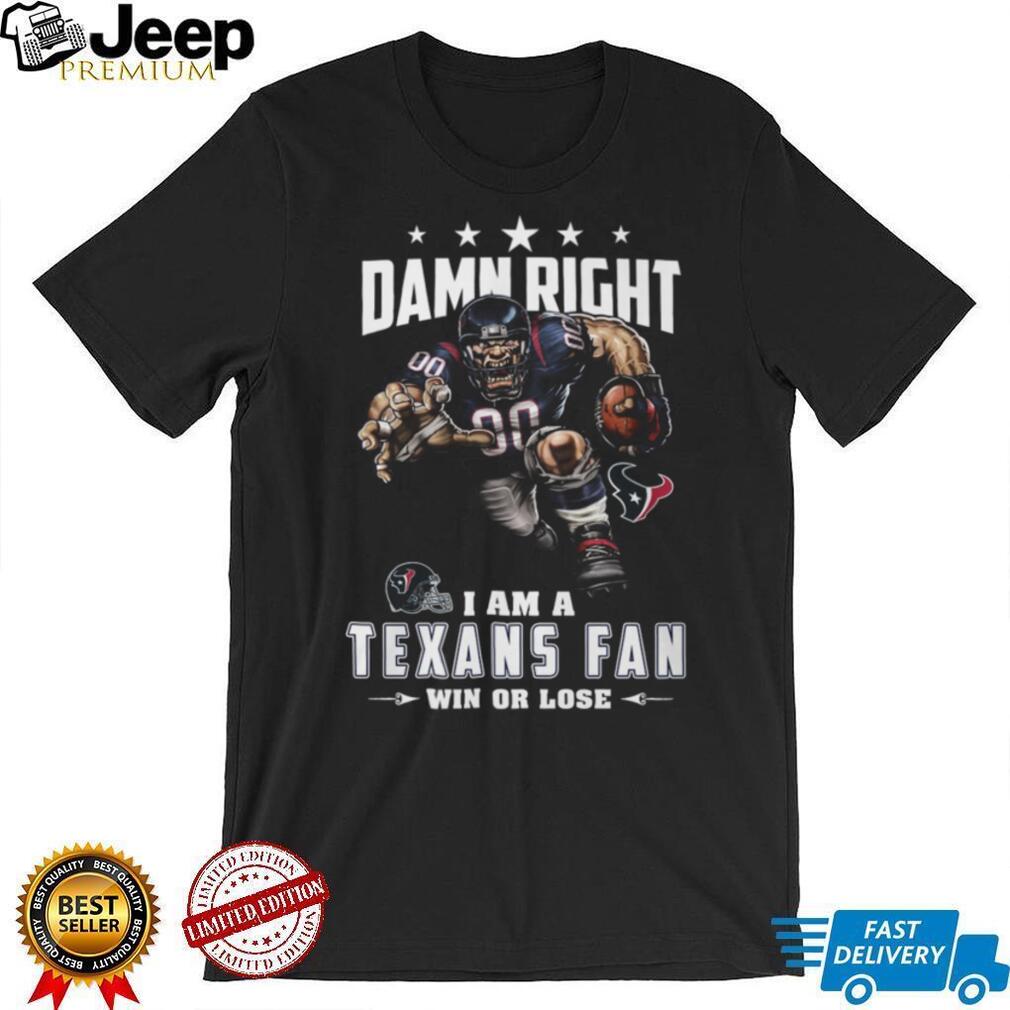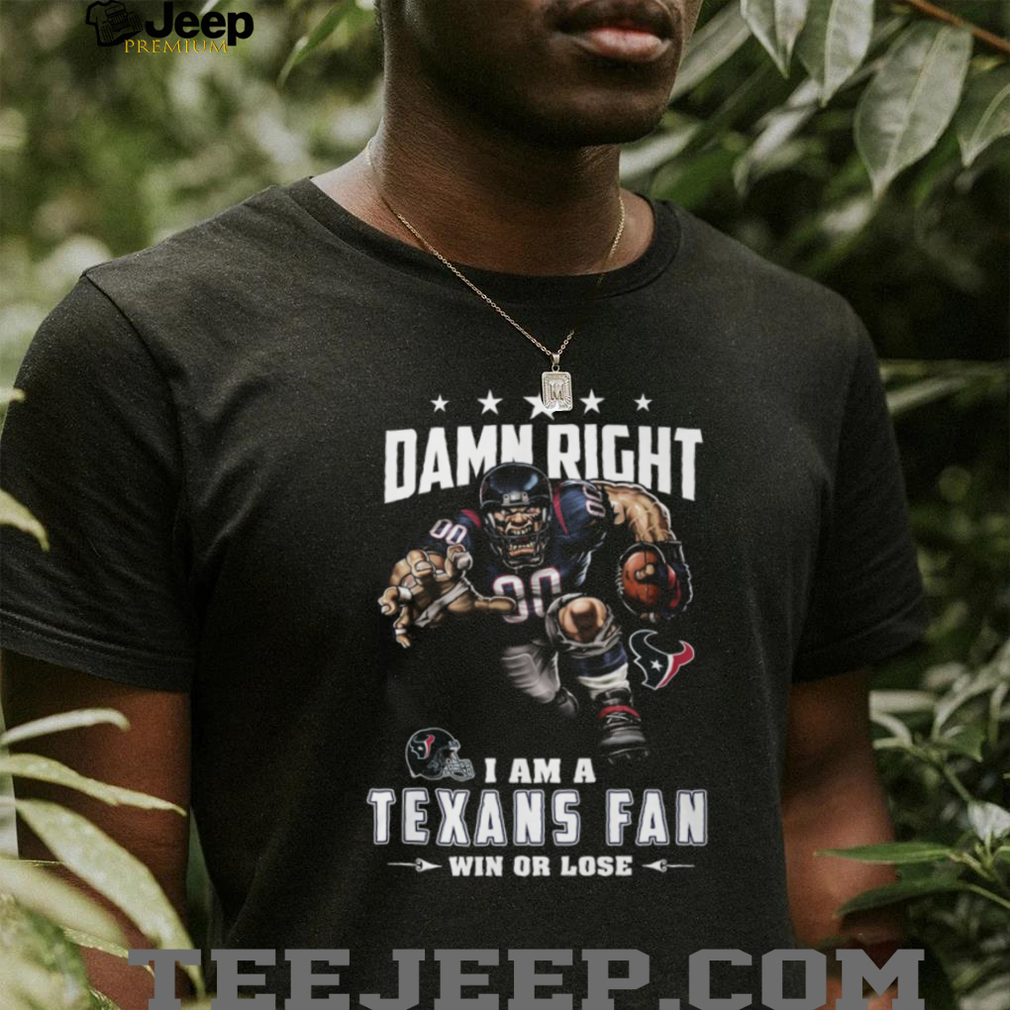 👕 About Damn Right I Am A Houston Texans Fan Win Or Lose Mascot T Shirt