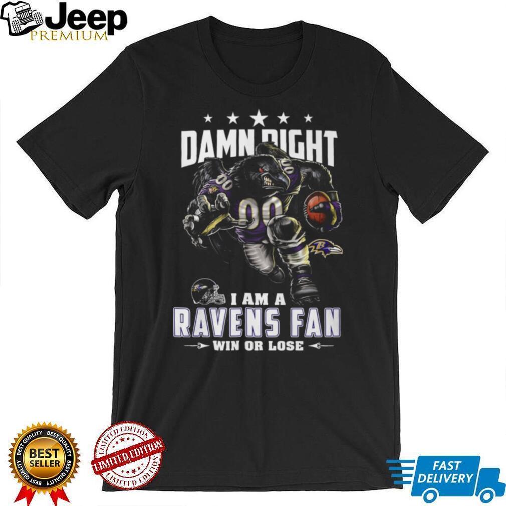 👕 About Damn Right I Am A Ravens Fan Win Or Lose T Shirt