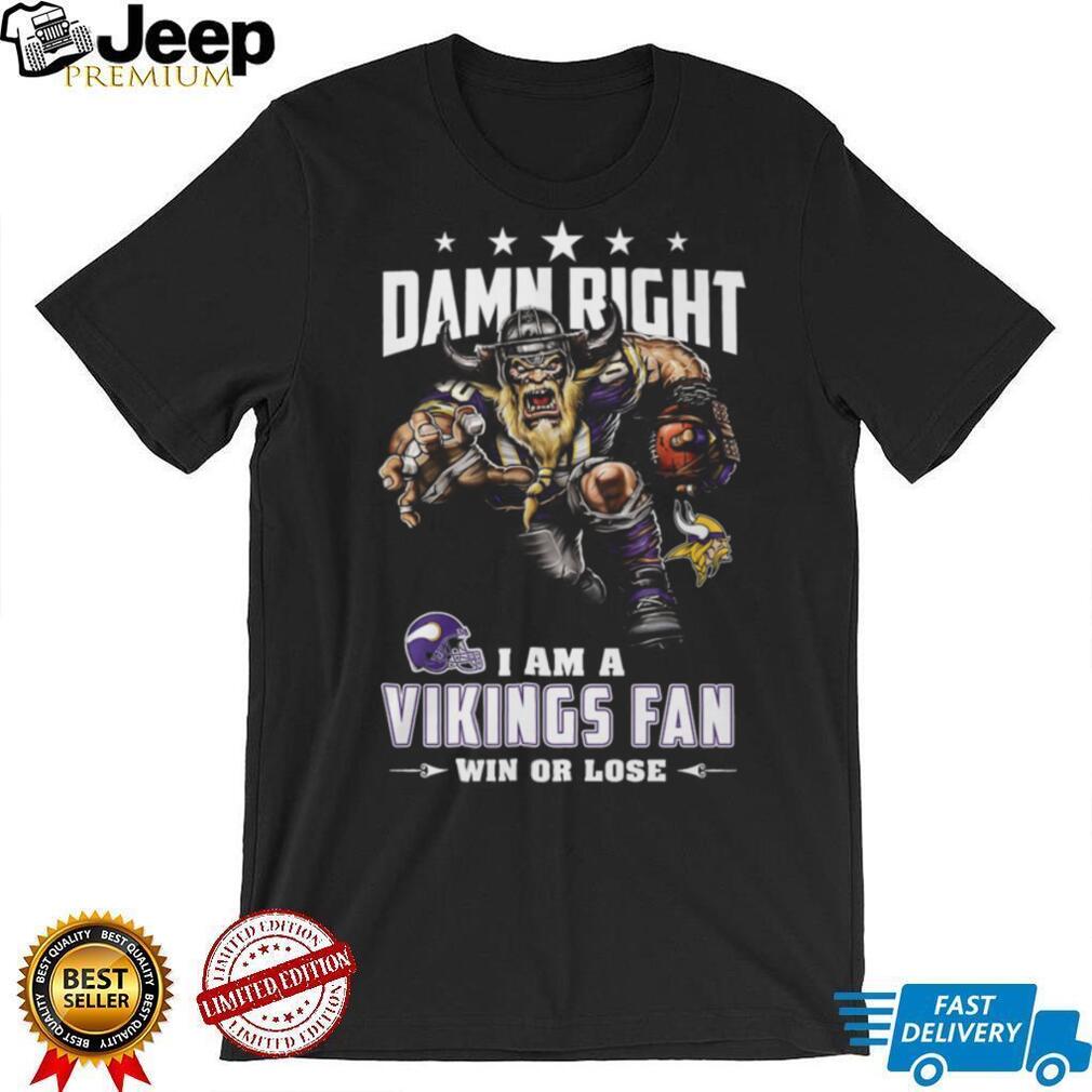 👕 About Damn Right I Am A Vikings Fan T Shirt, Minnesota Vikings NFL Apparel