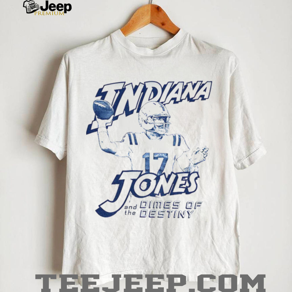 Ever imagined Daniel Jones of the Indianapolis Colts as an intrepid archaeologist, ready to uncover the "Dimes of Destiny"? This unique "Daniel Jones Indianapolis Colts Indiana Jones and The Dimes of Destiny shirt" merges NFL fandom with classic adventure, creating a standout piece for your wardrobe. It’s for football enthusiasts who appreciate a clever pop culture twist, perfect for those who love both gridiron action and cinematic escapades. Show off your team pride with a legendary flair that sparks conversations and turns heads.