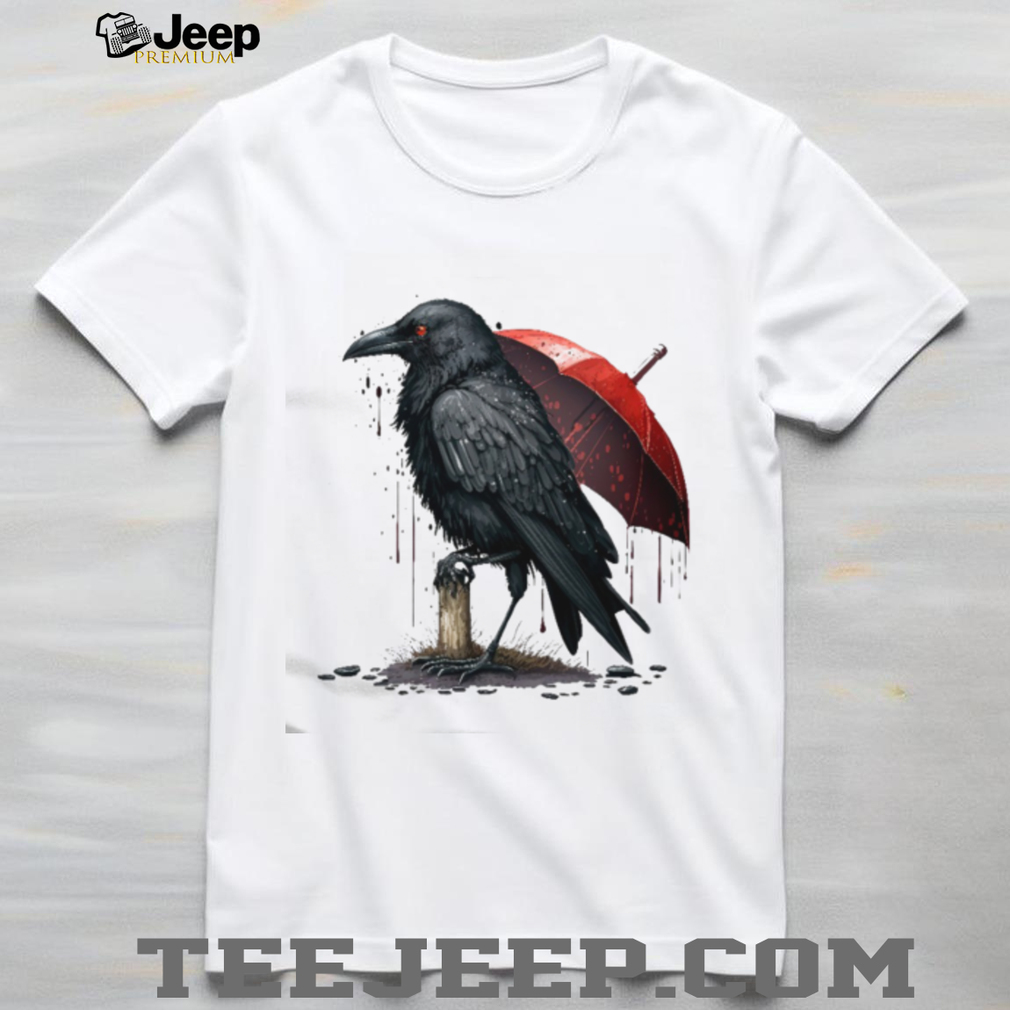 ()Dark Crow with Red Umbrella Gothic Ink Art T Shirt, Treat yourself or make a great gift for your loved ones