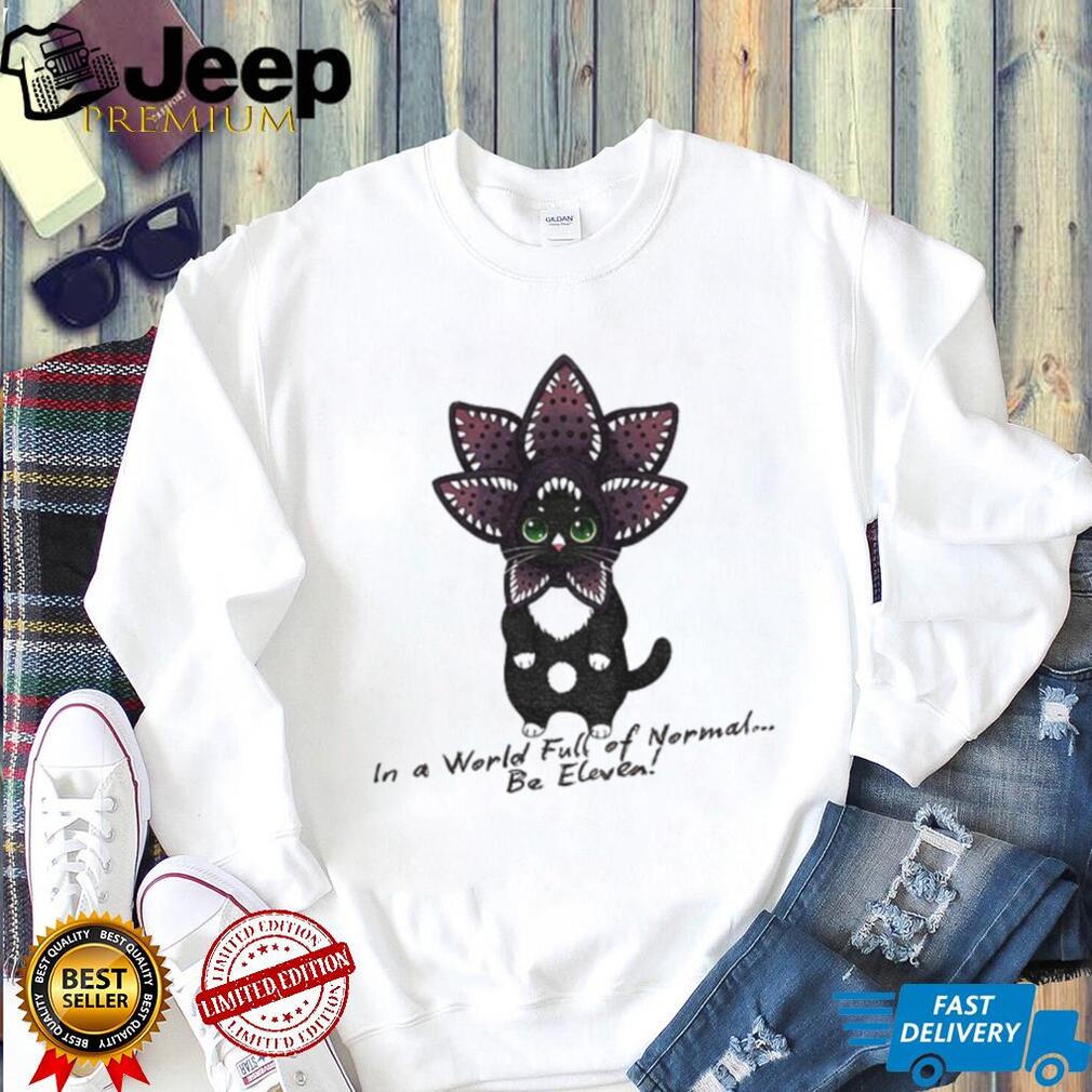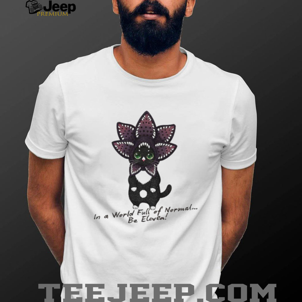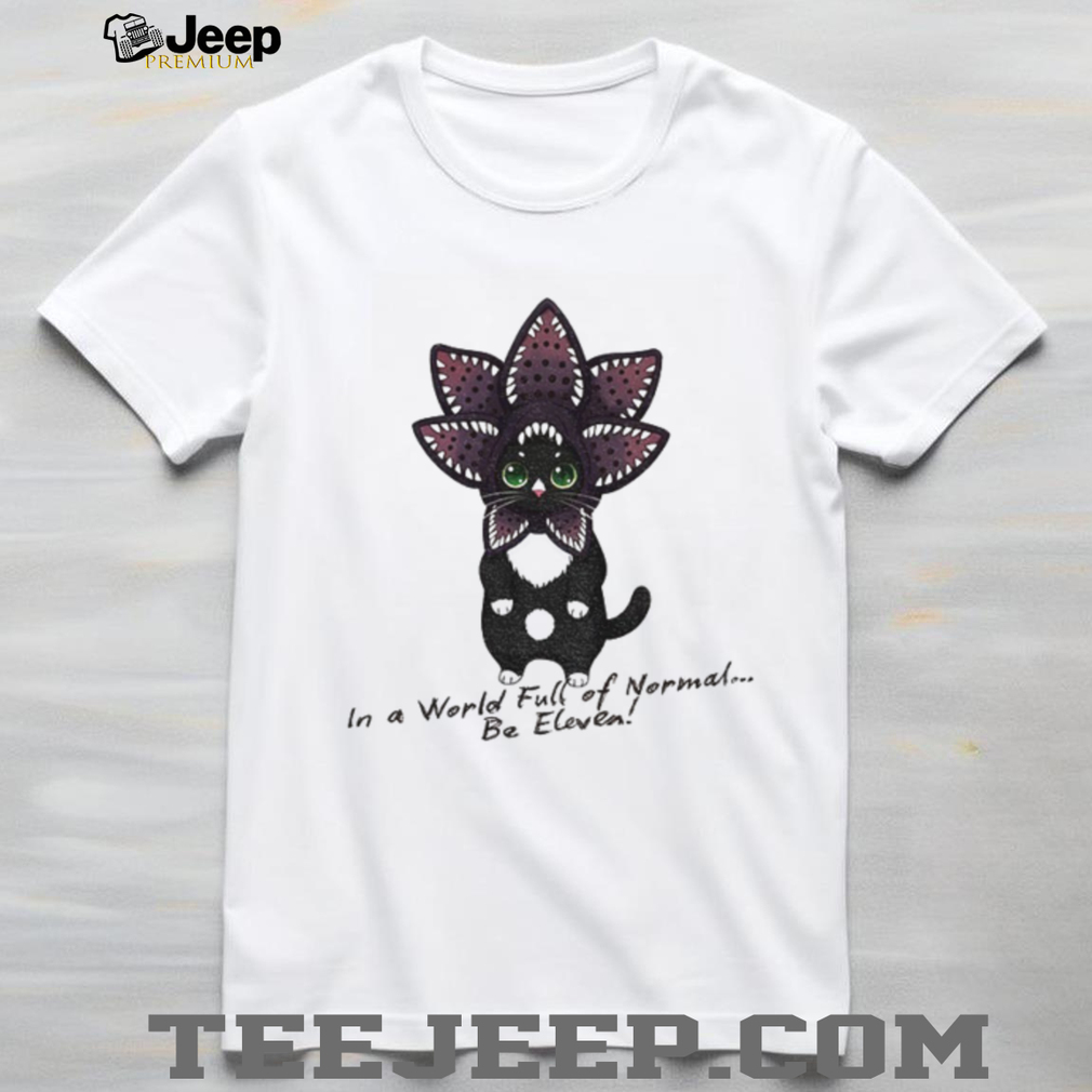 Show off your love for Stranger Things and cats with this hilarious “Demogorgon cat in a world full of normal be eleven” cartoon shirt! This unique tee combines the spooky world of the Upside Down with the adorable charm of a cartoon cat. It’s the perfect conversation starter for any fan.