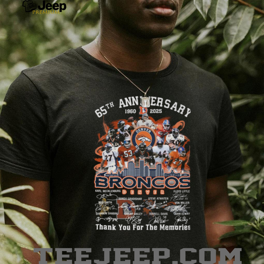 Imagine holding a piece of Denver Broncos history in your hands, celebrating 65 incredible years of triumphs, passion, and unforgettable moments. This Denver Broncos 65th Anniversary T Shirt is more than just fan apparel; it’s a heartfelt tribute to the legacy of your favorite team, featuring player signatures and a powerful "Thank You For The Memories" message. It’s the perfect way for true Broncos faithful to commemorate six and a half decades of gridiron glory, making it an essential addition to any fan’s collection and a standout piece for game days or casual wear.