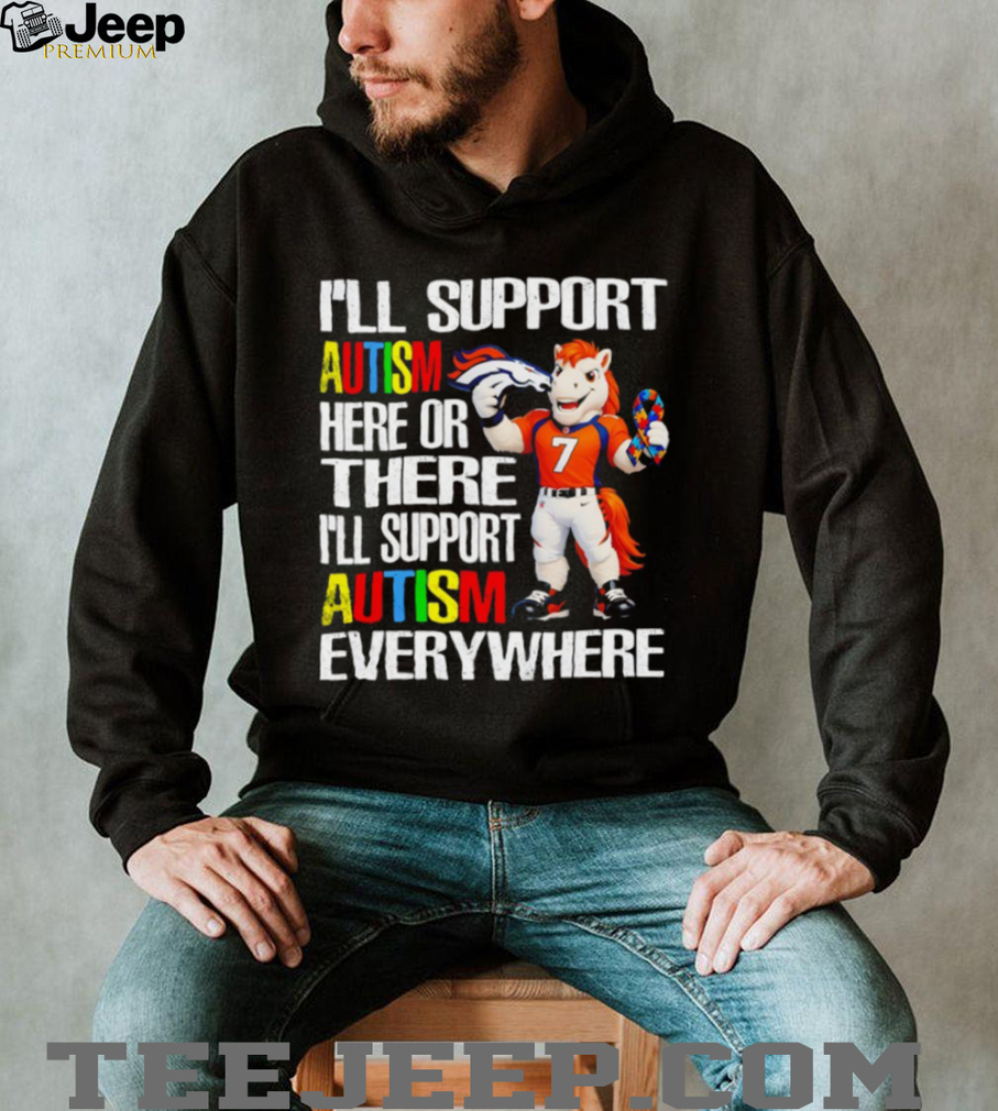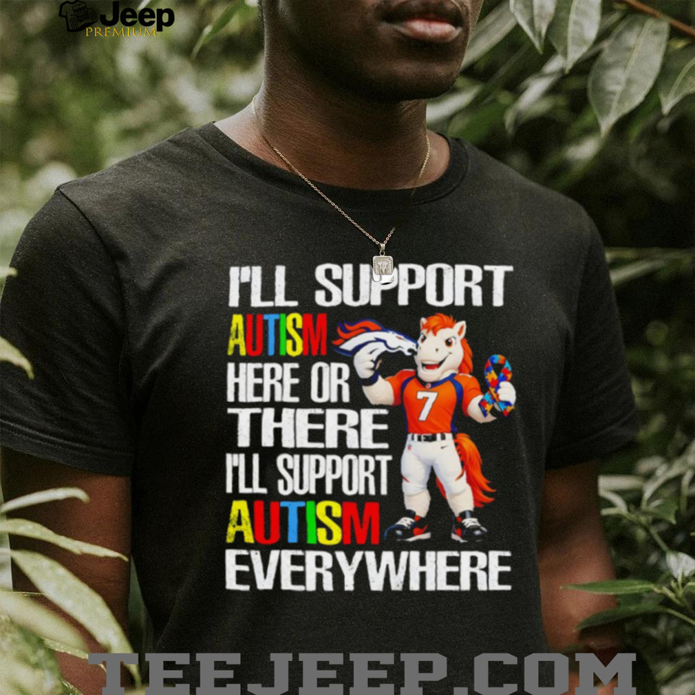 👕 About Denver Broncos Mascot Autism Awareness Support Ribbon T Shirt