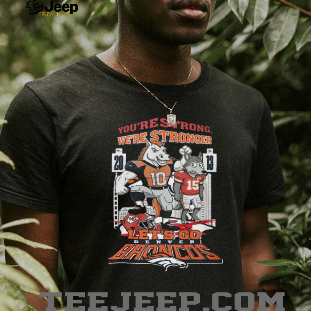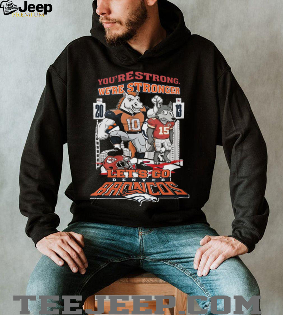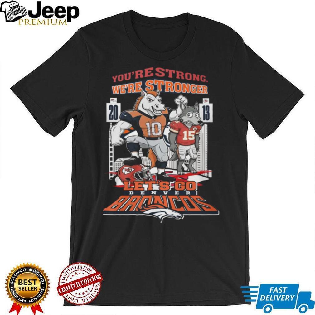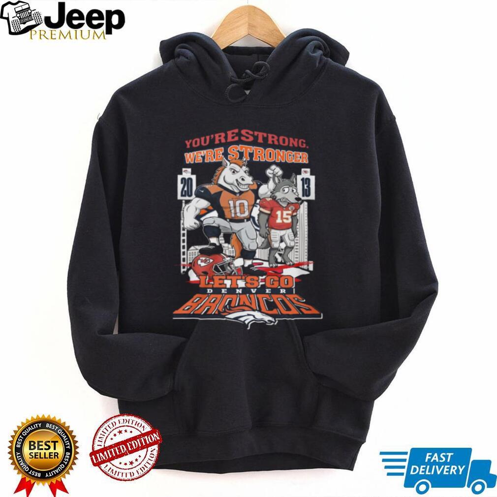 👕 About Denver Broncos You're Strong, We're Stronger Mascot T Shirt