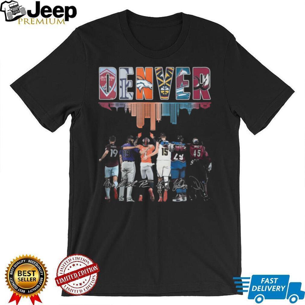 Denver City Sports Teams Players Arm In Arm Skyline Art T Shirt, Treat yourself or make a great gift for your loved ones