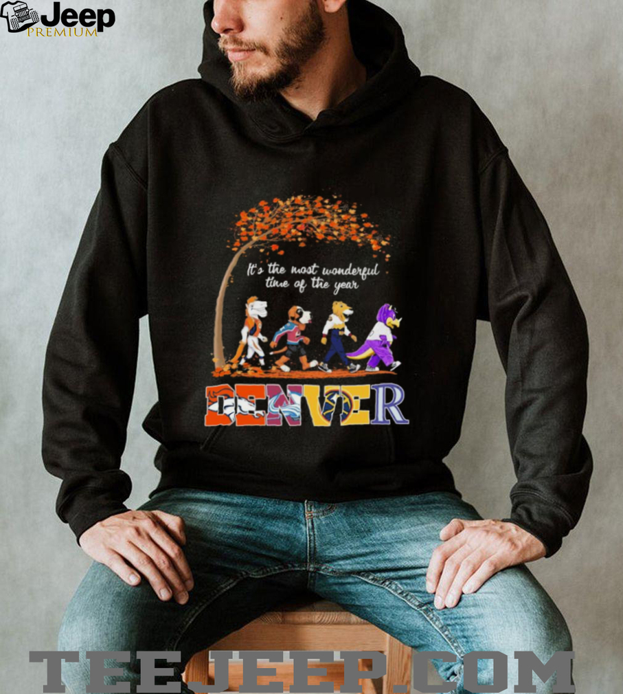 Searching for that perfect gift for the ultimate Denver sports fanatic in your life? This “Mascot Abbey Road It’s The Most Wonderful Time Of The Year” shirt is a guaranteed hit. It’s a thoughtful, engaging, and uniquely Denver-centric present that speaks directly to their passion for their beloved teams and their vibrant city. Whether it’s for a birthday, the festive holiday season (truly “the most wonderful time of the year” for gifting!), or just a meaningful gesture to acknowledge their unwavering loyalty, this shirt is bound to be a cherished item. It transcends typical fan gear, offering a creative and unifying artistic take on their devotion. This isn’t just fabric and ink; it’s an experience, a conversation starter at any tailgate, game watch party, or casual gathering. It embodies the essence of Denver sports culture in a single, stylish, and deeply personal garment. Personal testimonials from recipients of similar multi-team mascot apparel highlight the joy and appreciation they feel for such a unique and inclusive tribute to their city’s sports scene. It truly makes a powerful statement about what it means to be a Denver sports fan, through and through.
