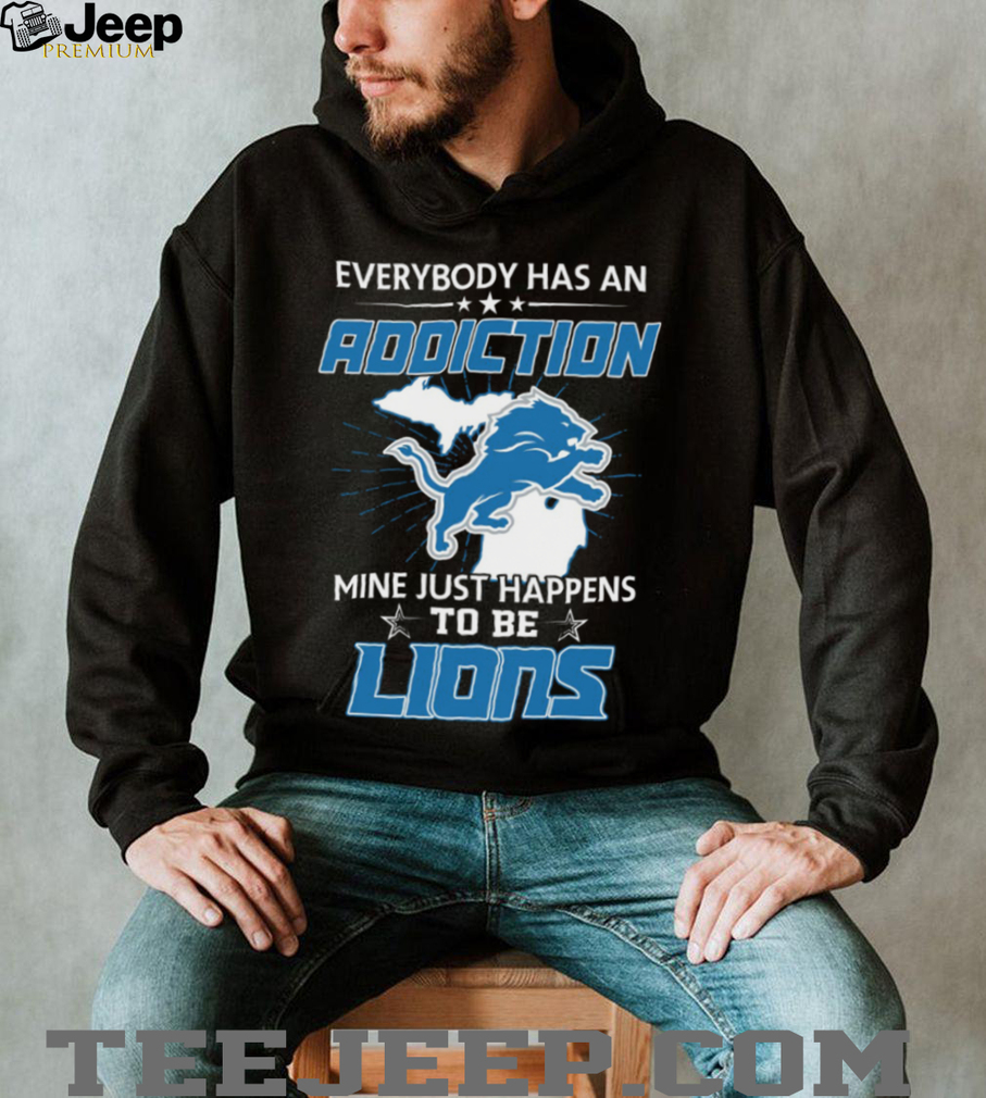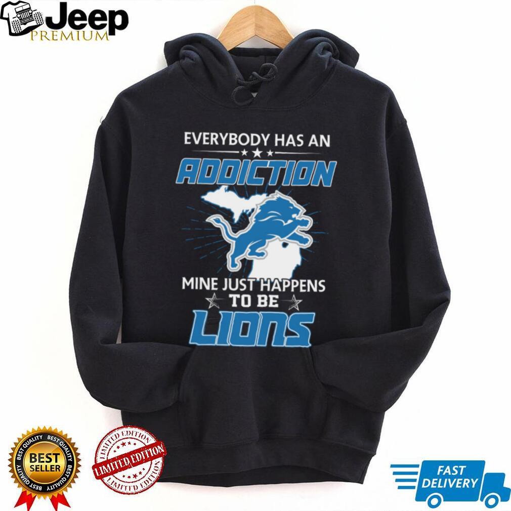 Embrace your unwavering Honolulu Blue devotion with the “Detroit Lions Everybody Has An Addiction T Shirt”. This tee isn’t just a piece of clothing; it’s a bold declaration of your Lions fandom.