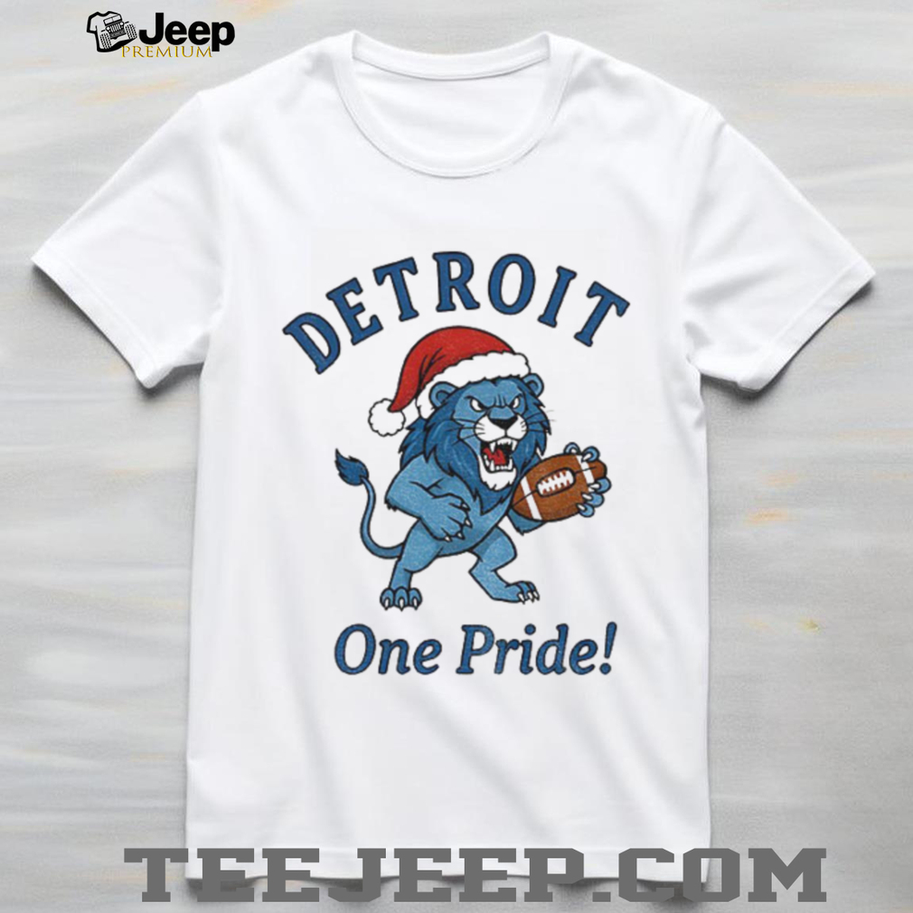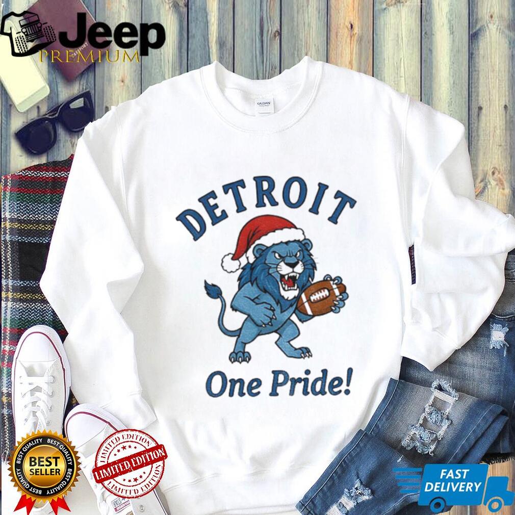 This Detroit Lions Christmas shirt captures the spirit of the season with your favorite mascot sporting a Santa hat, embodying true Detroit One Pride. Made from a soft, breathable cotton blend, it ensures comfort whether you’re at a festive game-day party or unwrapping gifts. The vibrant design, as seen in the first image, is printed to last, so your team spirit shines bright year after year. It solves the common fan dilemma of finding unique holiday wear that perfectly merges passion for the Lions with Christmas merriment. Available in various sizes, it offers a relaxed fit for all body types, making it a great addition to any Lions fan’s wardrobe.