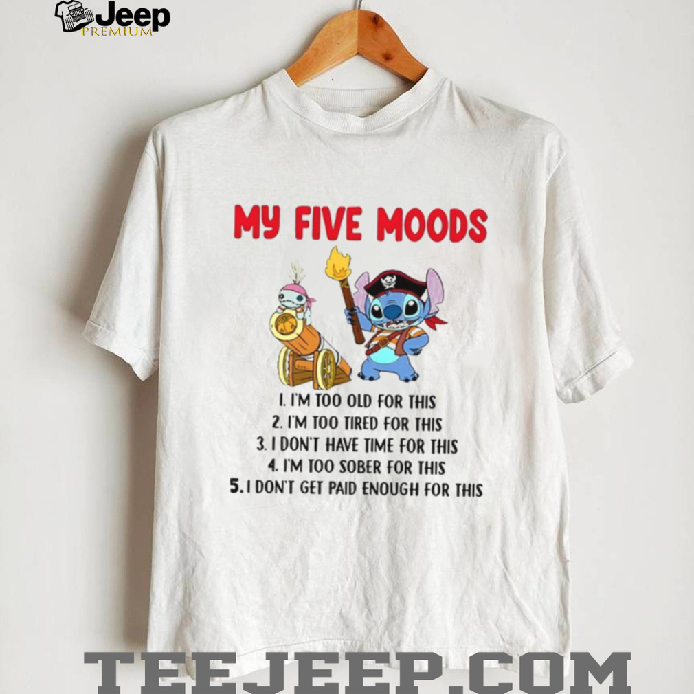 To keep your Disney Lilo & Stitch My Five Moods Funny T Shirt looking its best, machine wash it in cold water and tumble dry on low. This will help preserve the print and keep the fabric soft and comfortable for years to come.