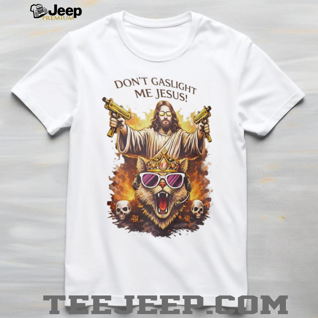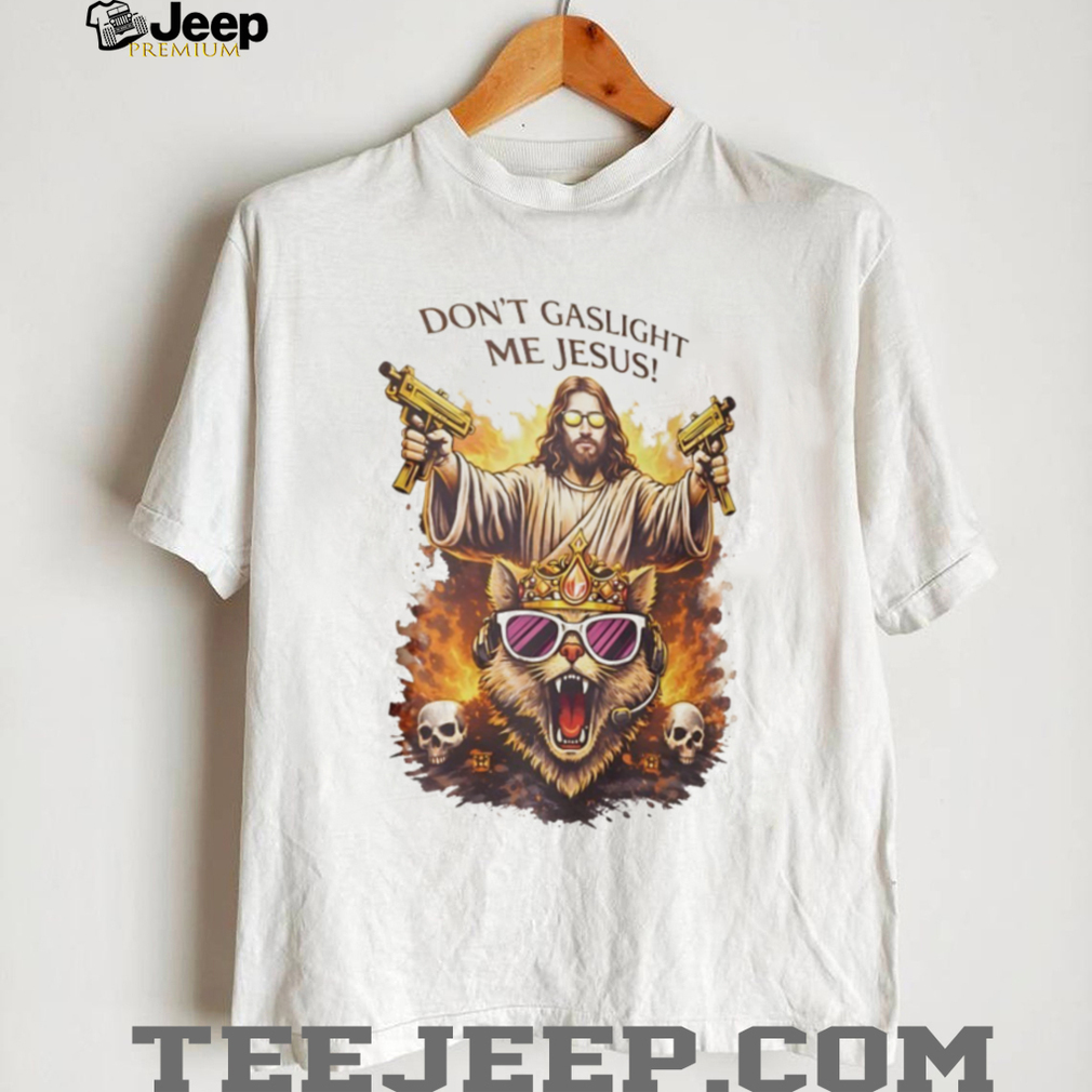 ()Don’t Gaslight Me Jesus Armed Savior and Crowned Cat Graphic T Shirt, Treat yourself or make a great gift for your loved ones