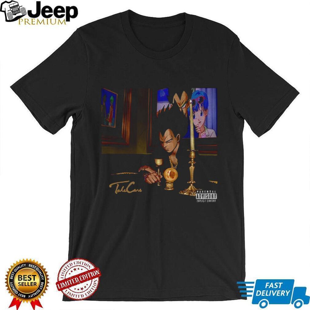 Ever imagined Vegeta and Bulma reimagined in Drake’s iconic pose? This Dragon Ball Vegeta and Bulma “drake take care” shirt puts a hilarious spin on the Saiyan Prince and his headstrong wife. If you’re a Dragon Ball fan with a sense of humor, this tee is ready to spark conversations and turn heads. Get ready to showcase your love for the series with a unique twist!