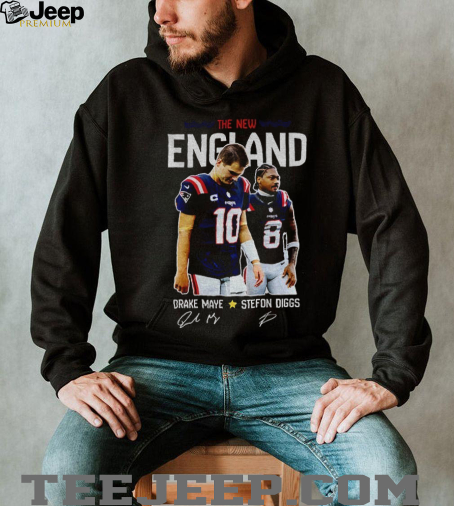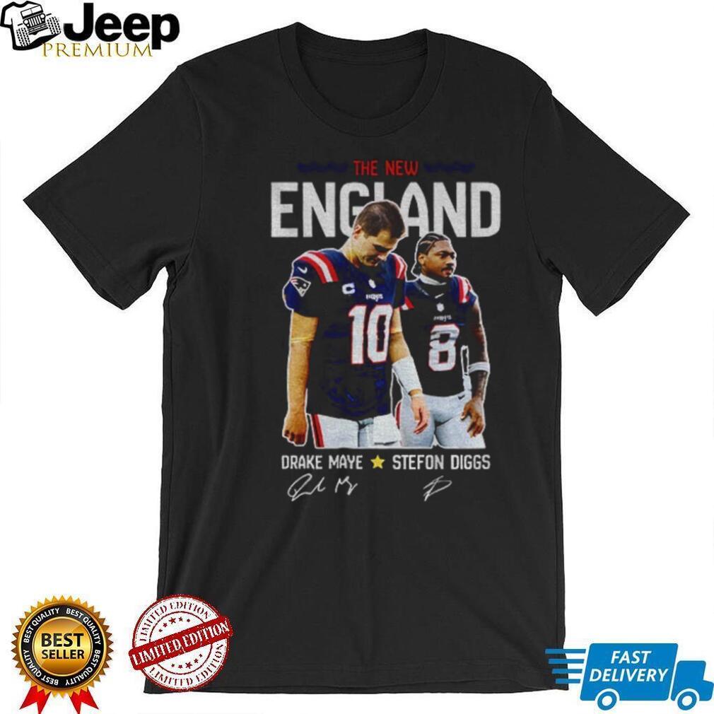 (Drake Maye and Stefon Diggs New England Patriots Signatures Football T Shirt)Drake Maye and Stefon Diggs New England Patriots Signatures Football T Shirt, Treat yourself or make a great gift for your loved ones