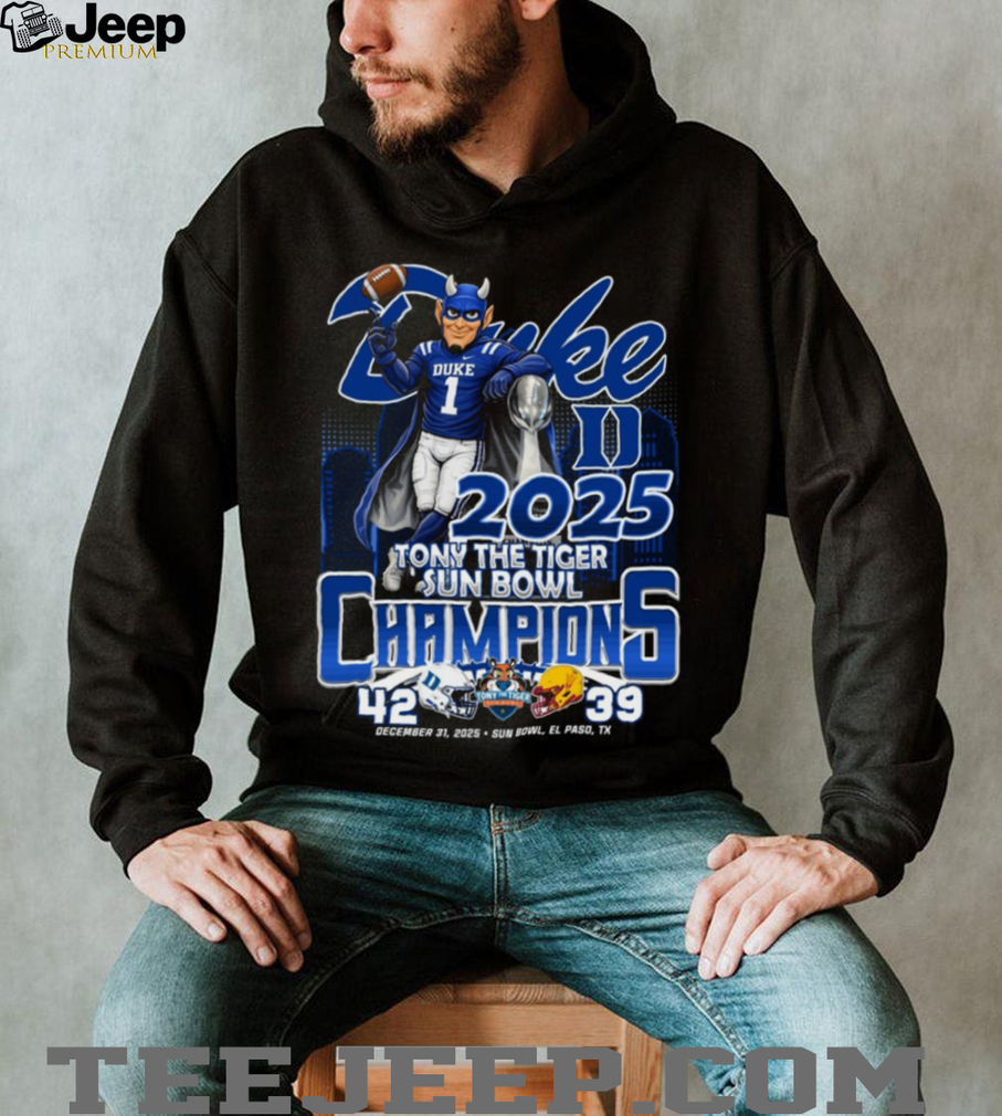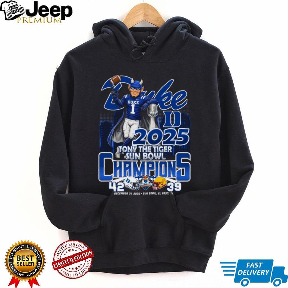 👕 About Duke Blue Devils 2025 Tony the Tiger Sun Bowl Champions T Shirt
