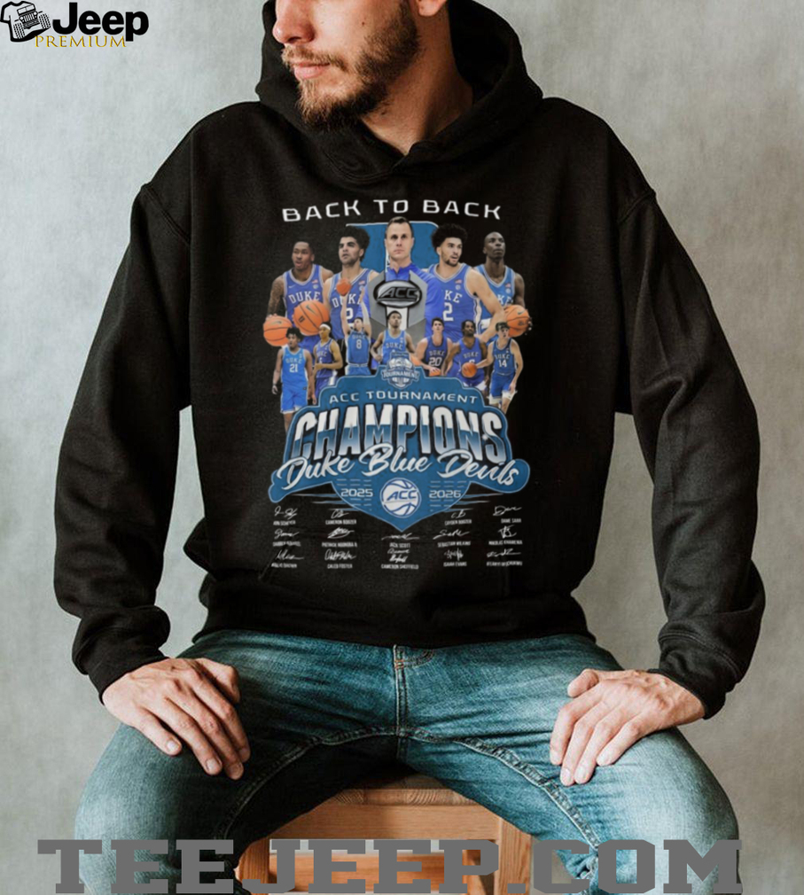 👕 About Duke Blue Devils Back To Back ACC Tournament Champions 2025 2026 Signatures T Shirt