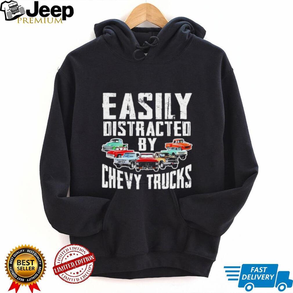 The “Easily distracted by Chevy trucks shirt” is more than just casual wear; it’s a statement of identity for anyone whose eyes naturally drift towards a gleaming grille or a classic body style of a Chevrolet pickup. It’s an ideal gift for truck owners, mechanics, collectors, or simply those who harbor a deep admiration for these enduring vehicles. Wear it to car shows, while working on your own rig, or just out and about to share a relatable sentiment with fellow enthusiasts. It’s a fun, lighthearted way to express a true passion.