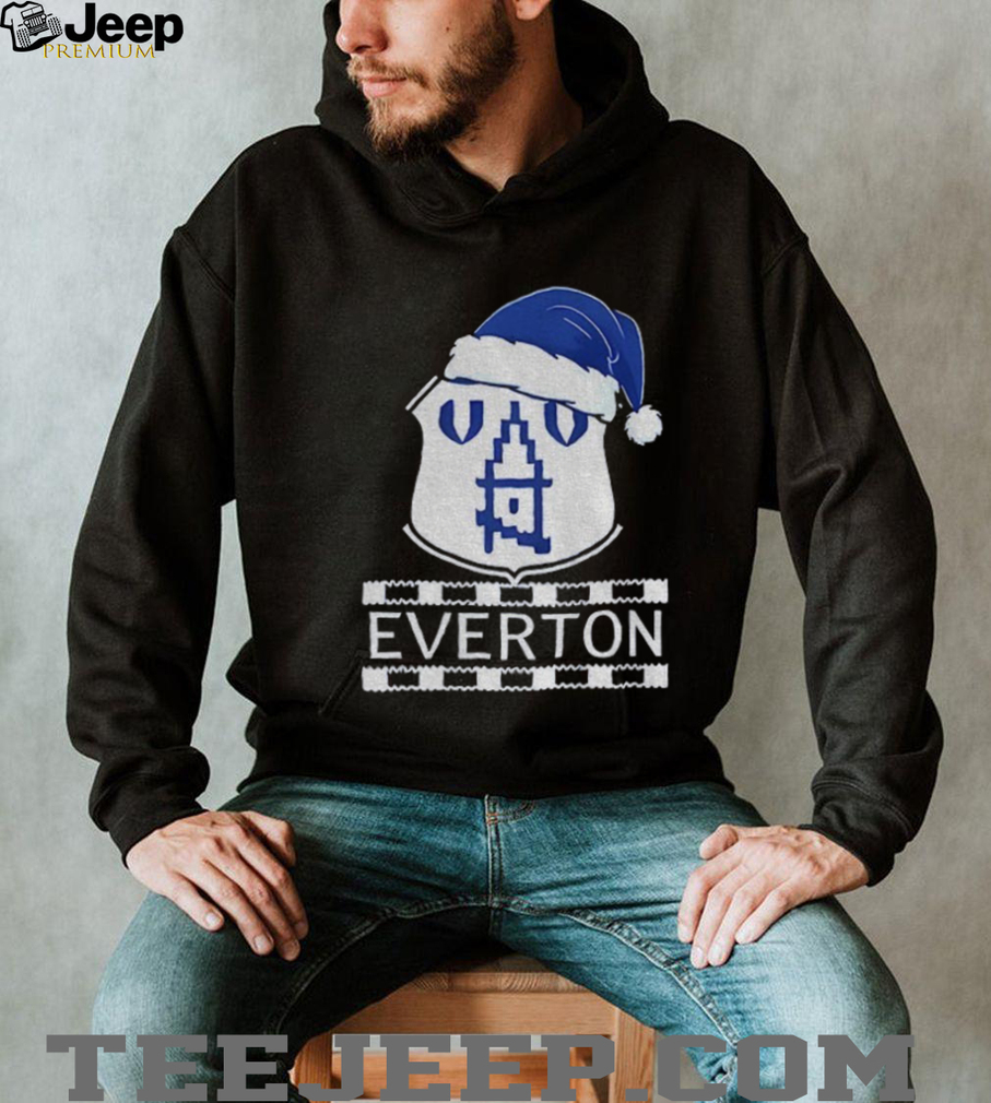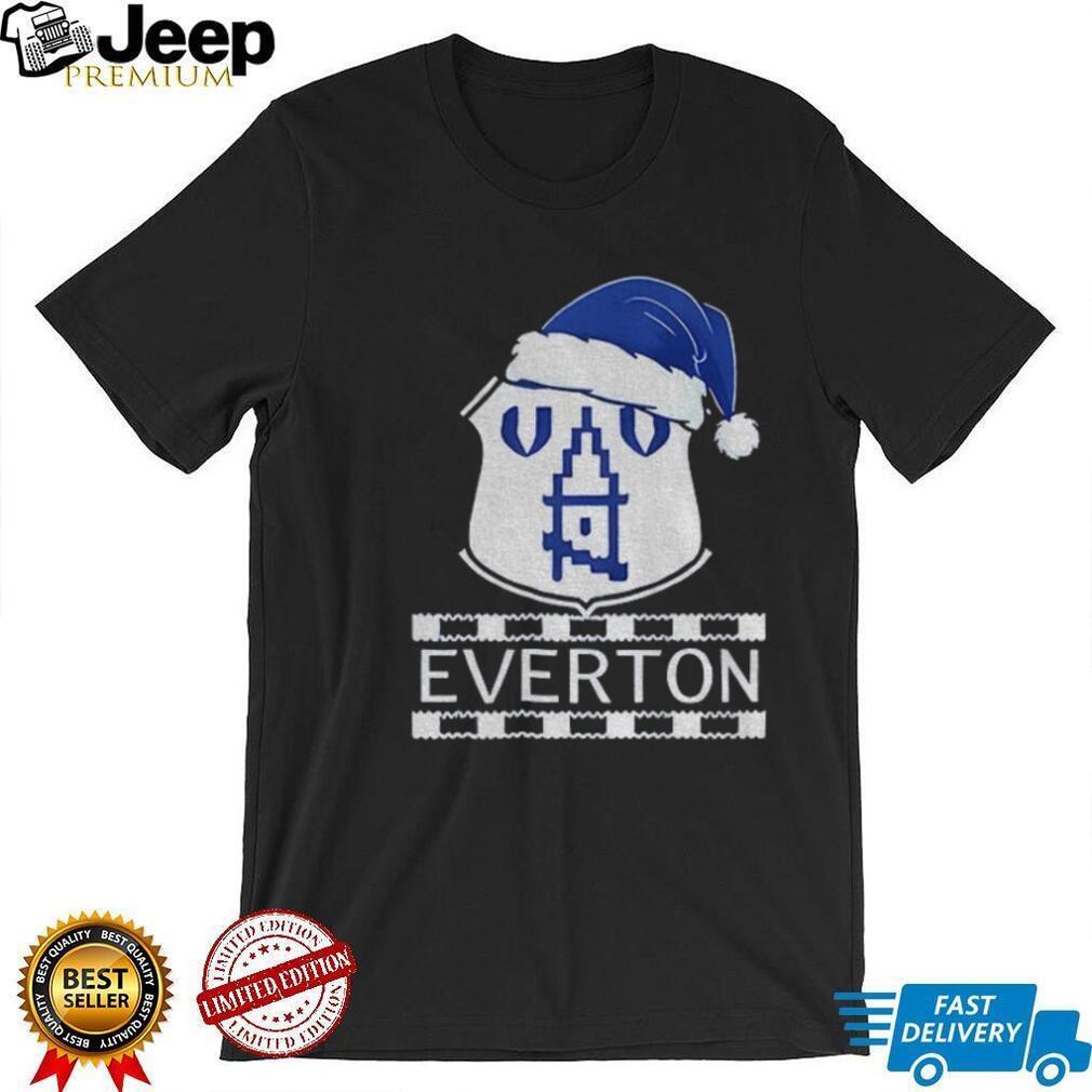 This Everton F.C. The Toffees Santa Merry Christmas logo shirt is essential for any dedicated Toffees fan during the holiday season. Made from a soft, breathable cotton blend, it ensures you stay comfortable whether you're cheering from the stands or enjoying a family Christmas dinner. The festive design, as seen in the first image, beautifully merges the iconic Everton logo with a jolly Santa hat, making it a standout piece that’s both spirited and stylish. It’s a comfortable fit that's perfect for showing your pride.