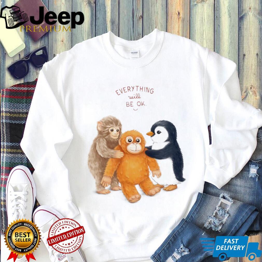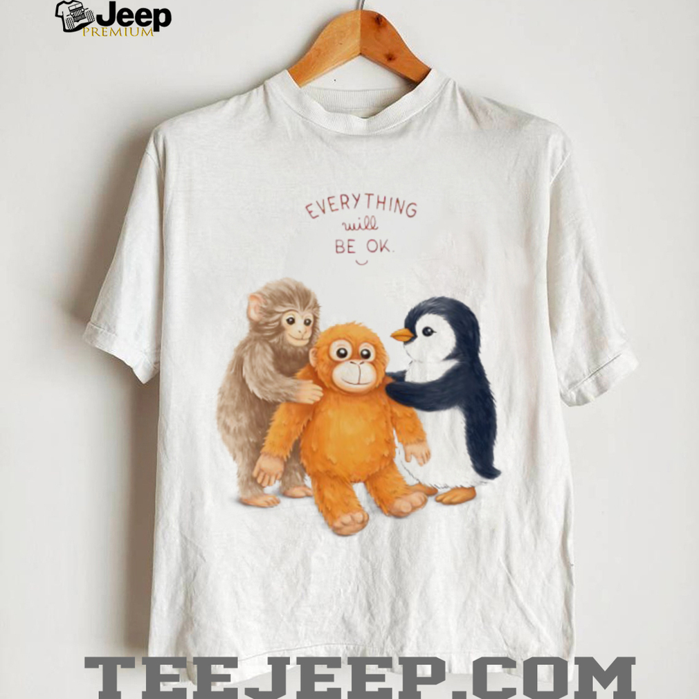 ()Everything Will Be OK Monkey and Penguin Friends T Shirt, Treat yourself or make a great gift for your loved ones